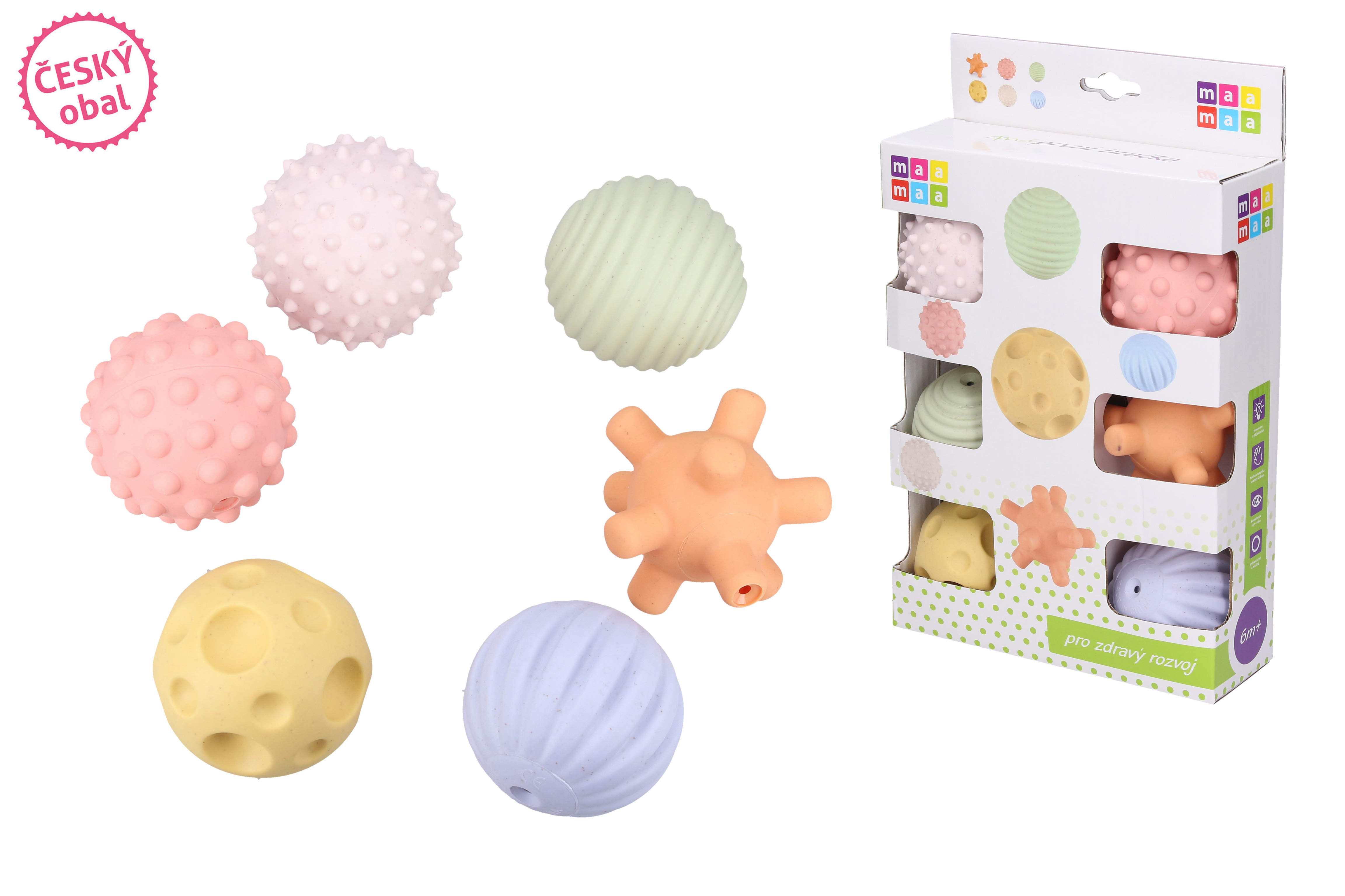 Maamaa Měkké míčky pískací set. Balení obsahuje 6ks. Velikost 5,5cm.
