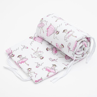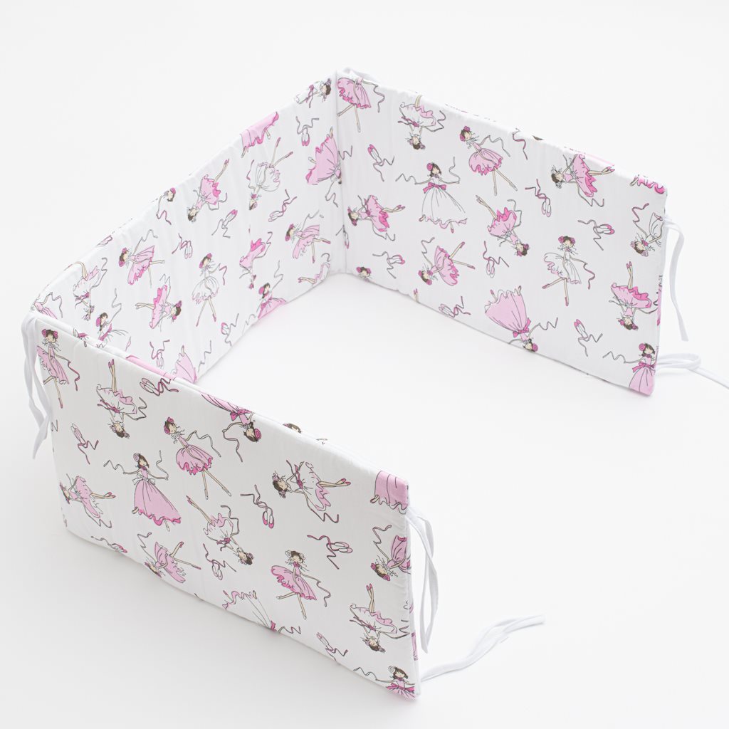 Praktický mantinel do postýlky New Baby Ballerina Bella s potiskem tančící baletky. Je vyroben z měkkého, příjemného materiálu. Složení: 100% bavlna. Výplň: 100% polyester. Upevnění k postýlce za pomocí stuh. Rozměr: cca 150 cm.