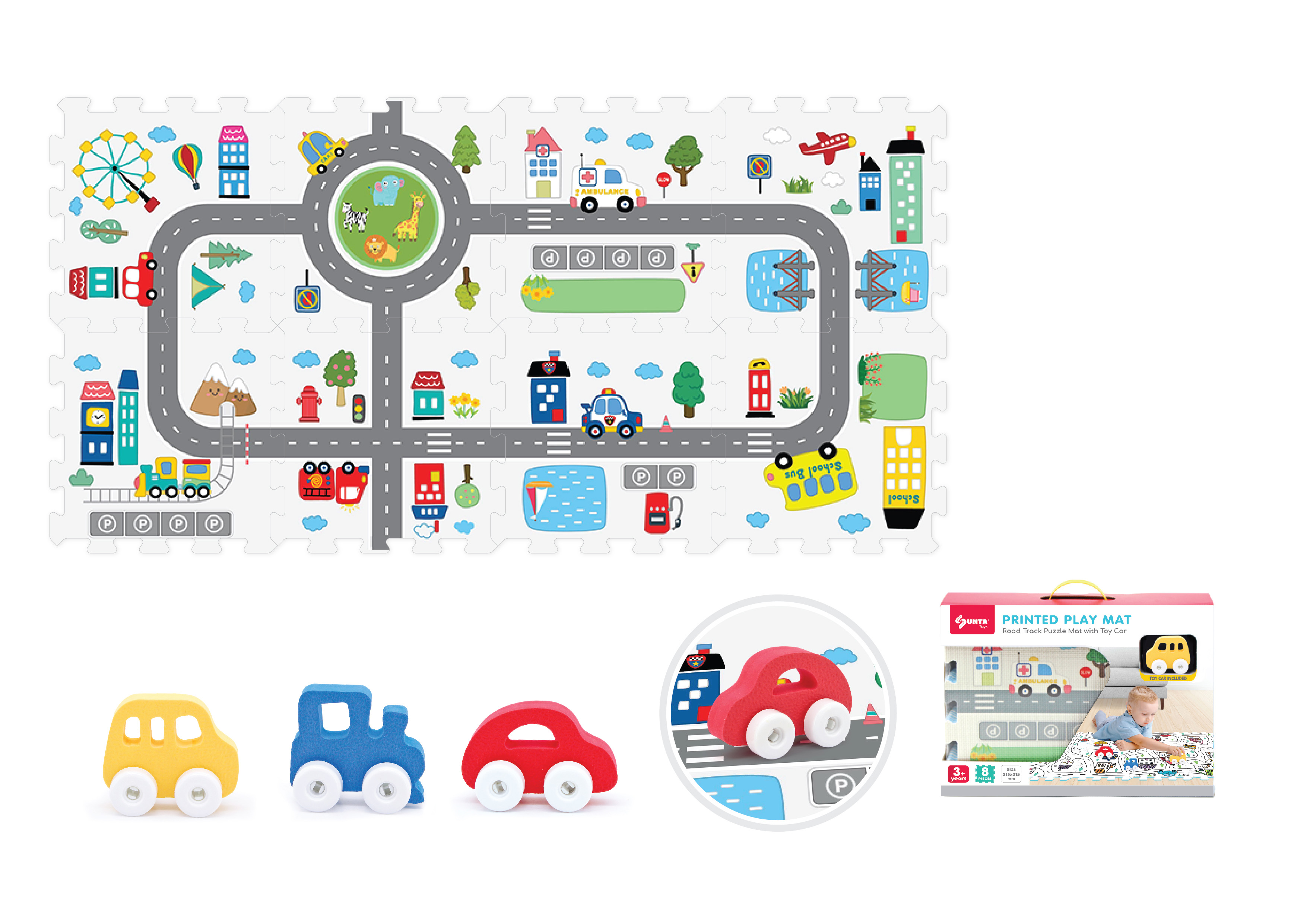 Měkké bloky s autíčkem město 8ks. Obsahuje 8 bloků 31,5x31,5x1cm, autíčko s volnými koly.