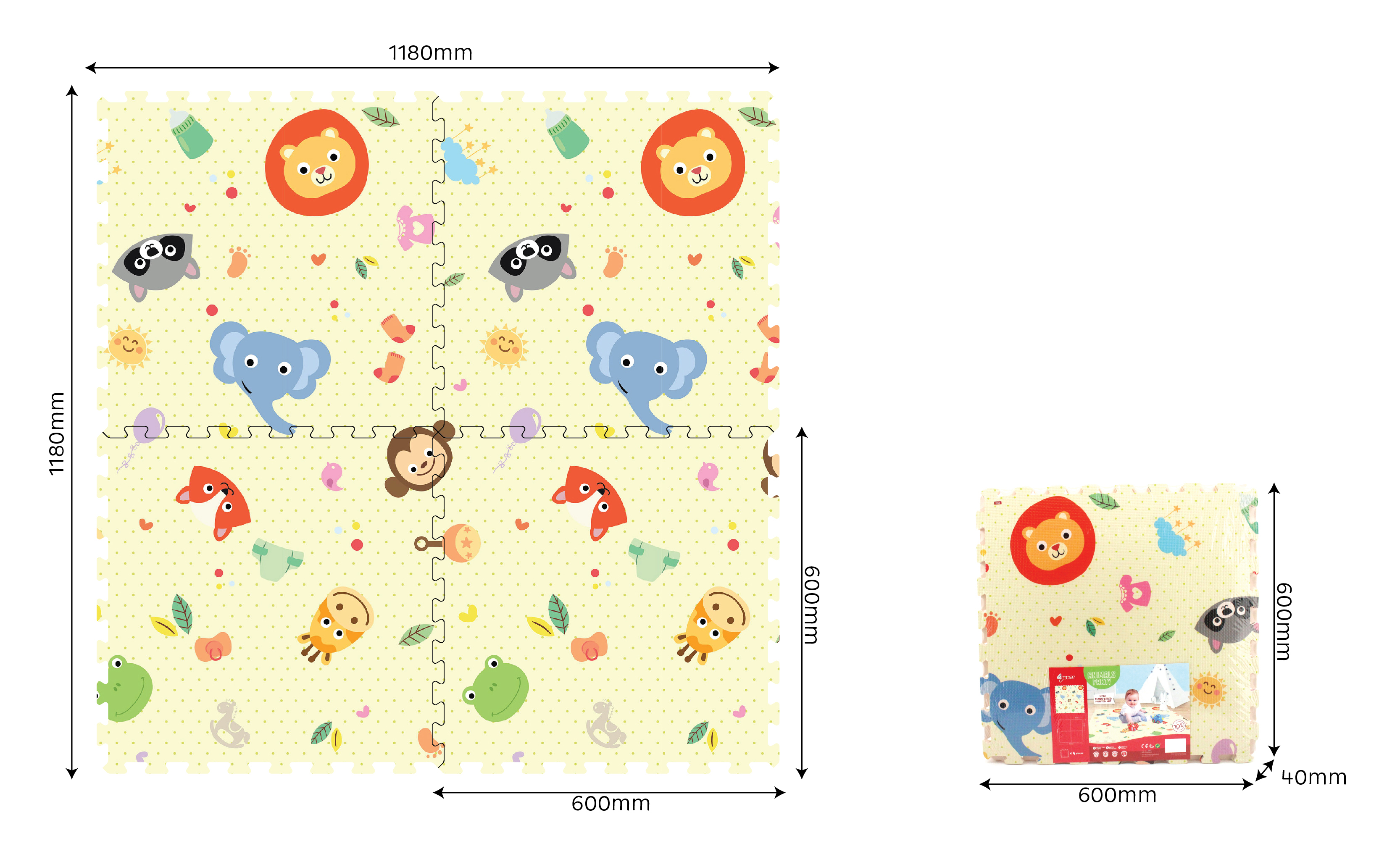 Měkké bloky, 4 ks, motiv zvířátka. Rozměry 60 x 60 cm. Tloušťka 1 cm.
