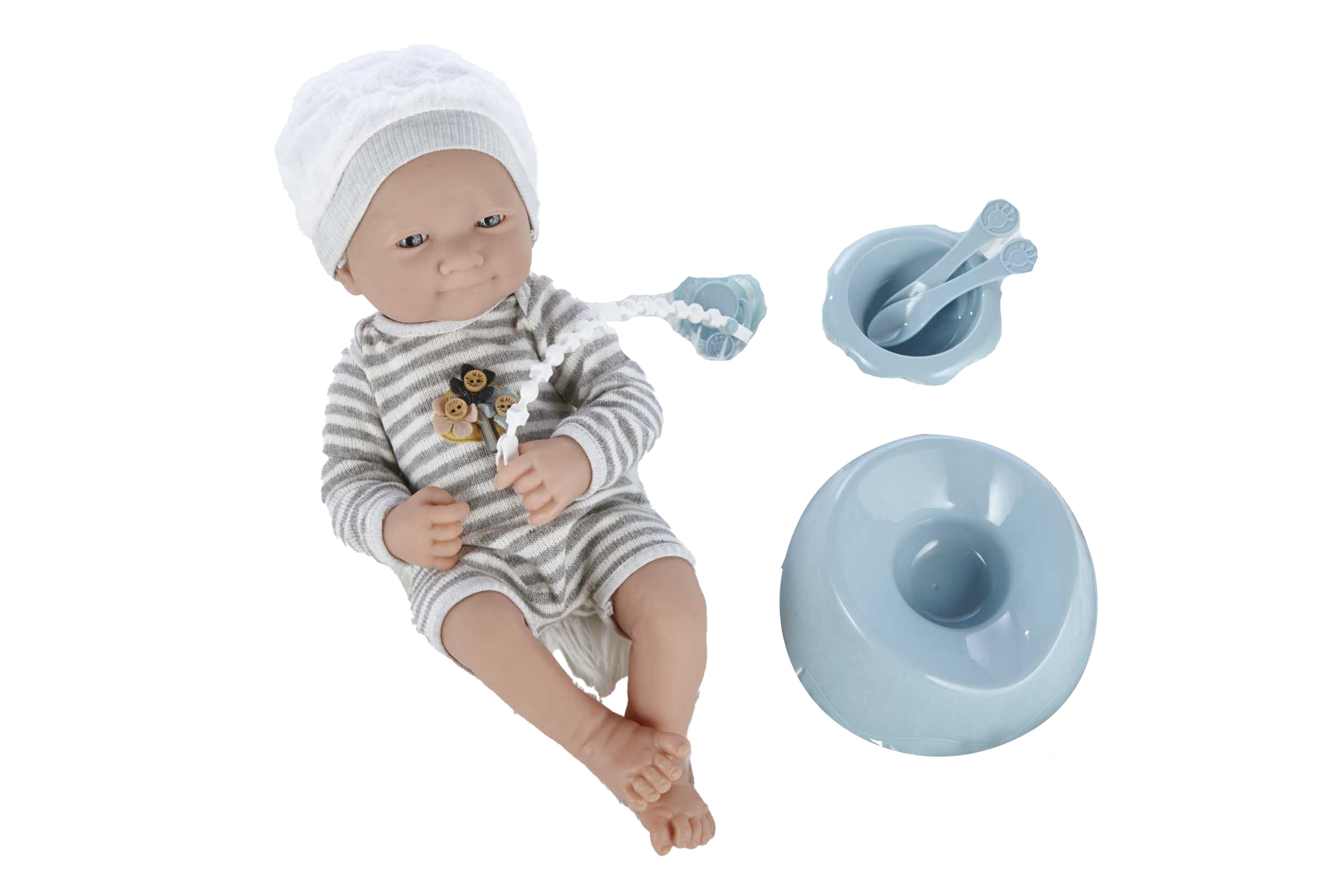 Miminko s nočníkem. Velikost panenky 35cm. Obsahuje: panenku, nočník, dudlík, misku s příborem.
