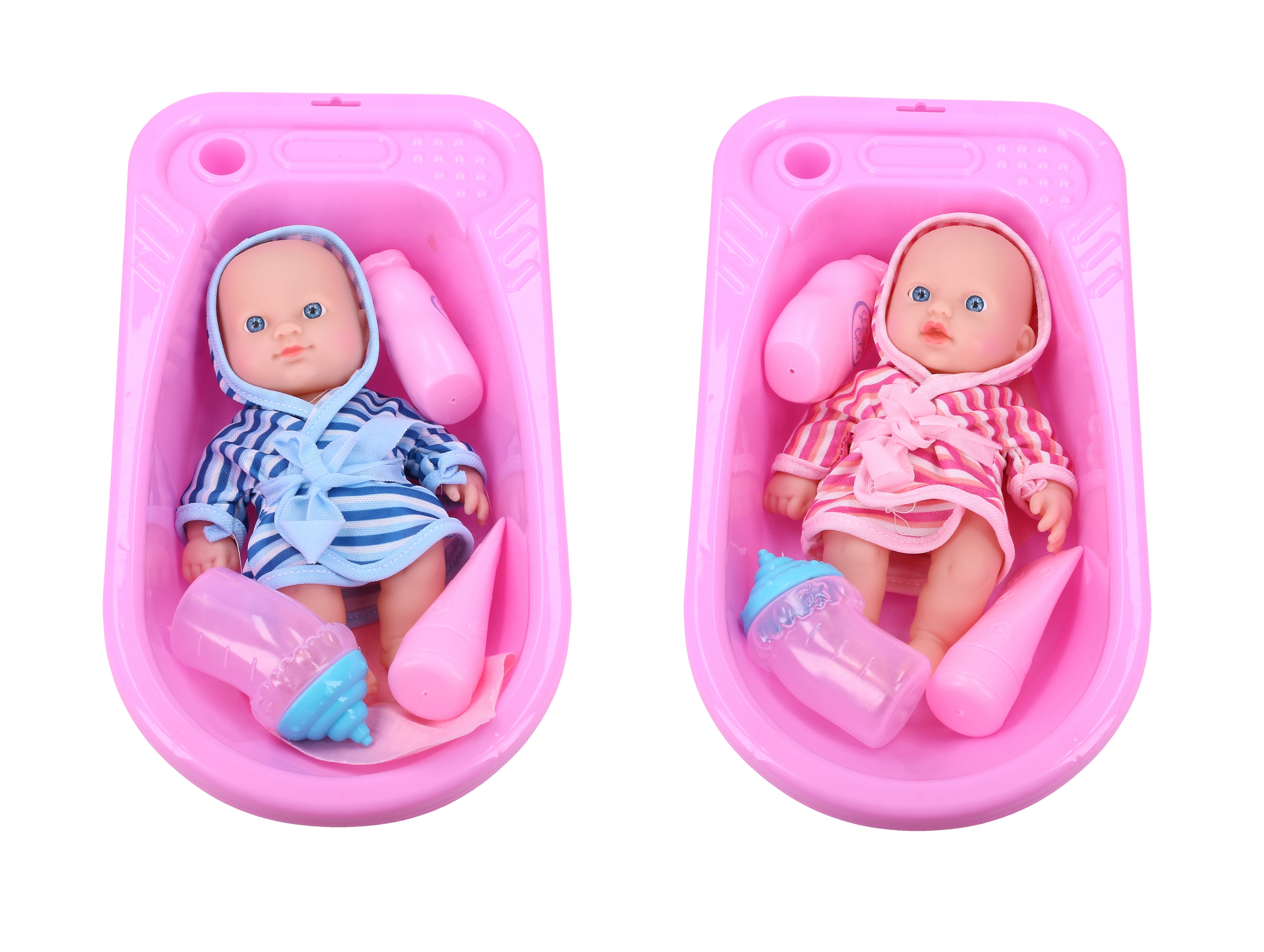 Koupací set s panenkou obsahuje vše potřebné pro koupání miminka. Miminko, které je součástí setu se krásně ponoří do vany a můžete ho umýt a pak i pohodlně osušit přiloženou osuškou.