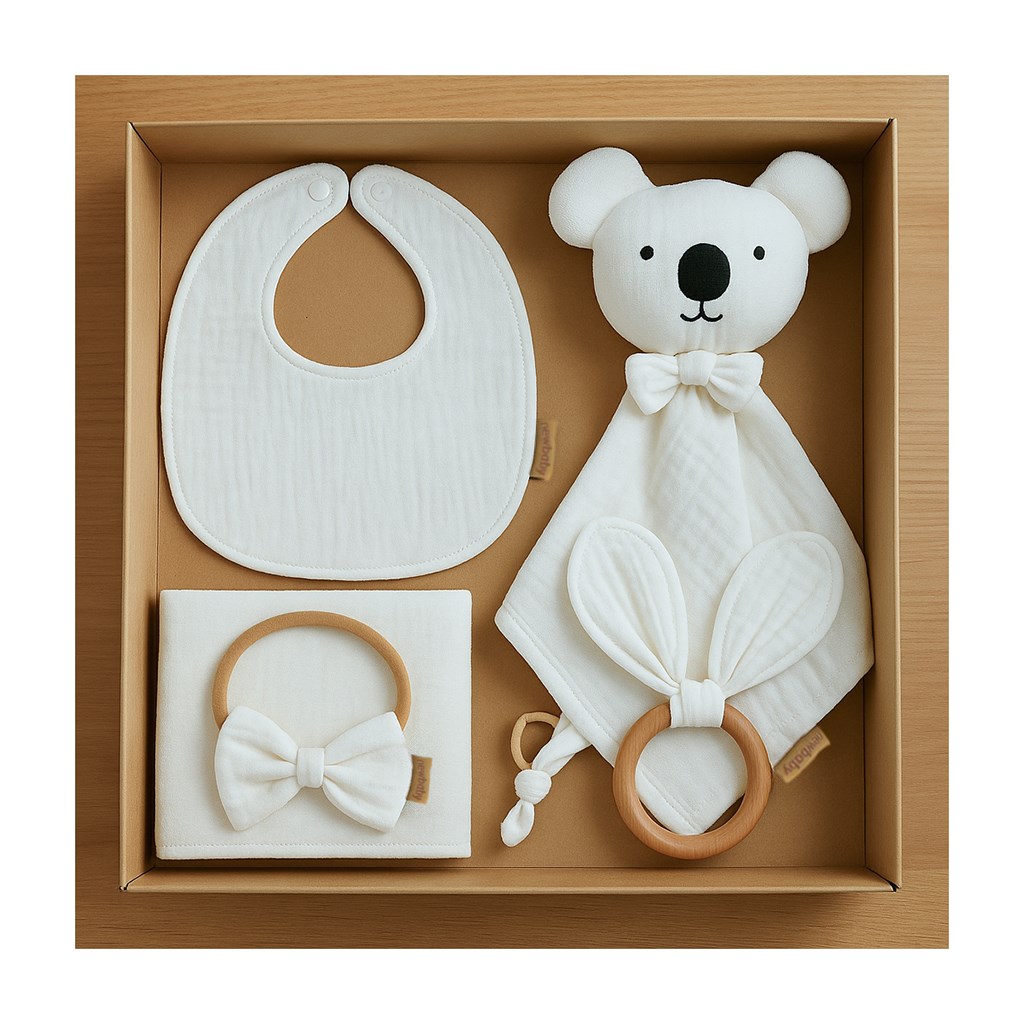 Mušelínová hračka „Koala“ je ideálním společníkem pro miminko již od prvních dnů života. Díky jemné mušelínové tkanině poskytuje pocit bezpečí, pomáhá usínání a stává se věrným kamarádem pro spánek. Minimalistický design a jemná barevnost dodávají hračce výjimečné kouzlo. Skvěle ladí s ostatními mušelínovými produkty New Baby a tvoří krásný dárkový komplet.