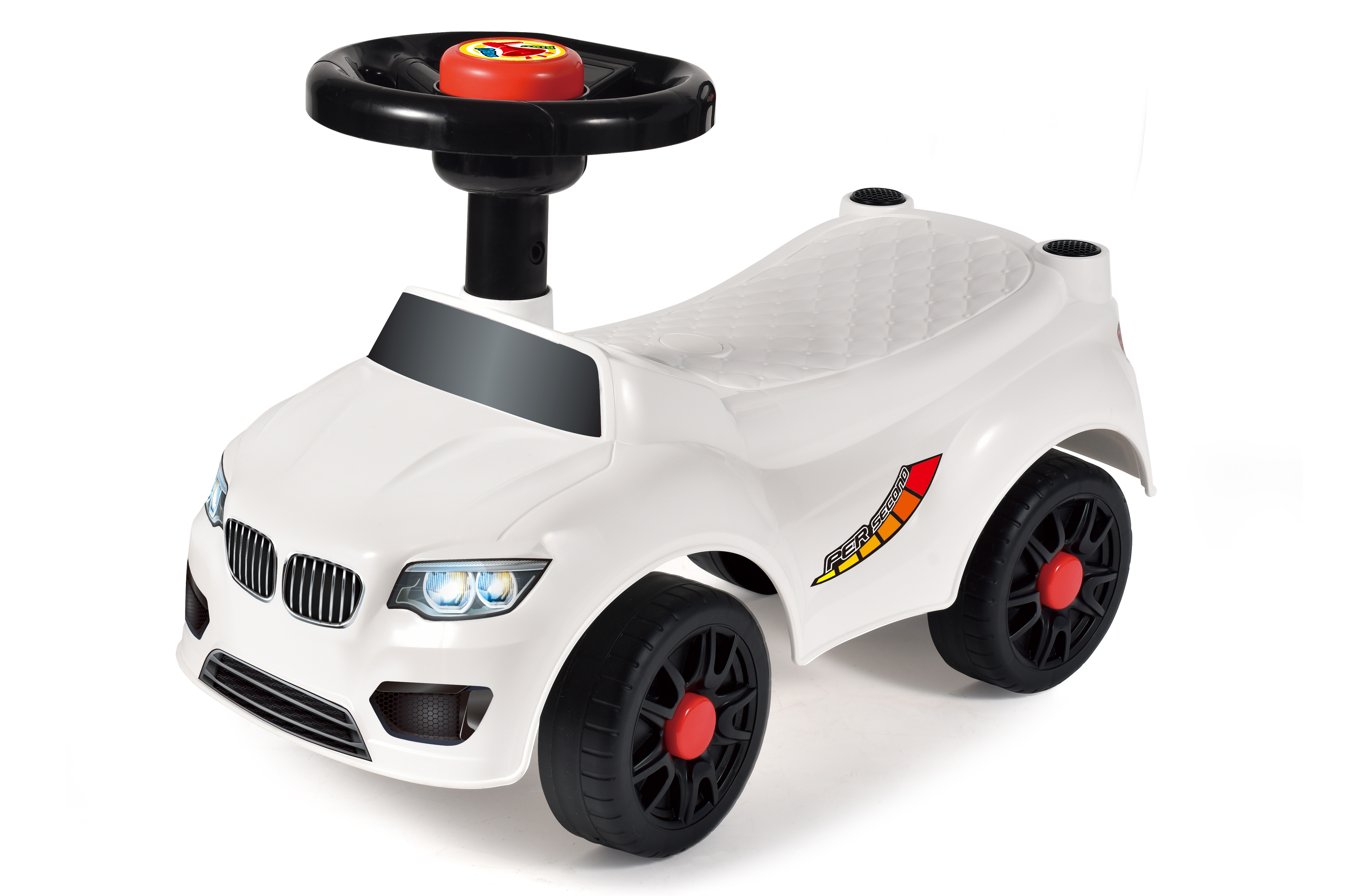 Odrážedlo bez opěradla bílé. Rozměry 50x21,5x33 cm. Nosnost 15 kg. Obrázkový návod na složení na spodní straně obalu.