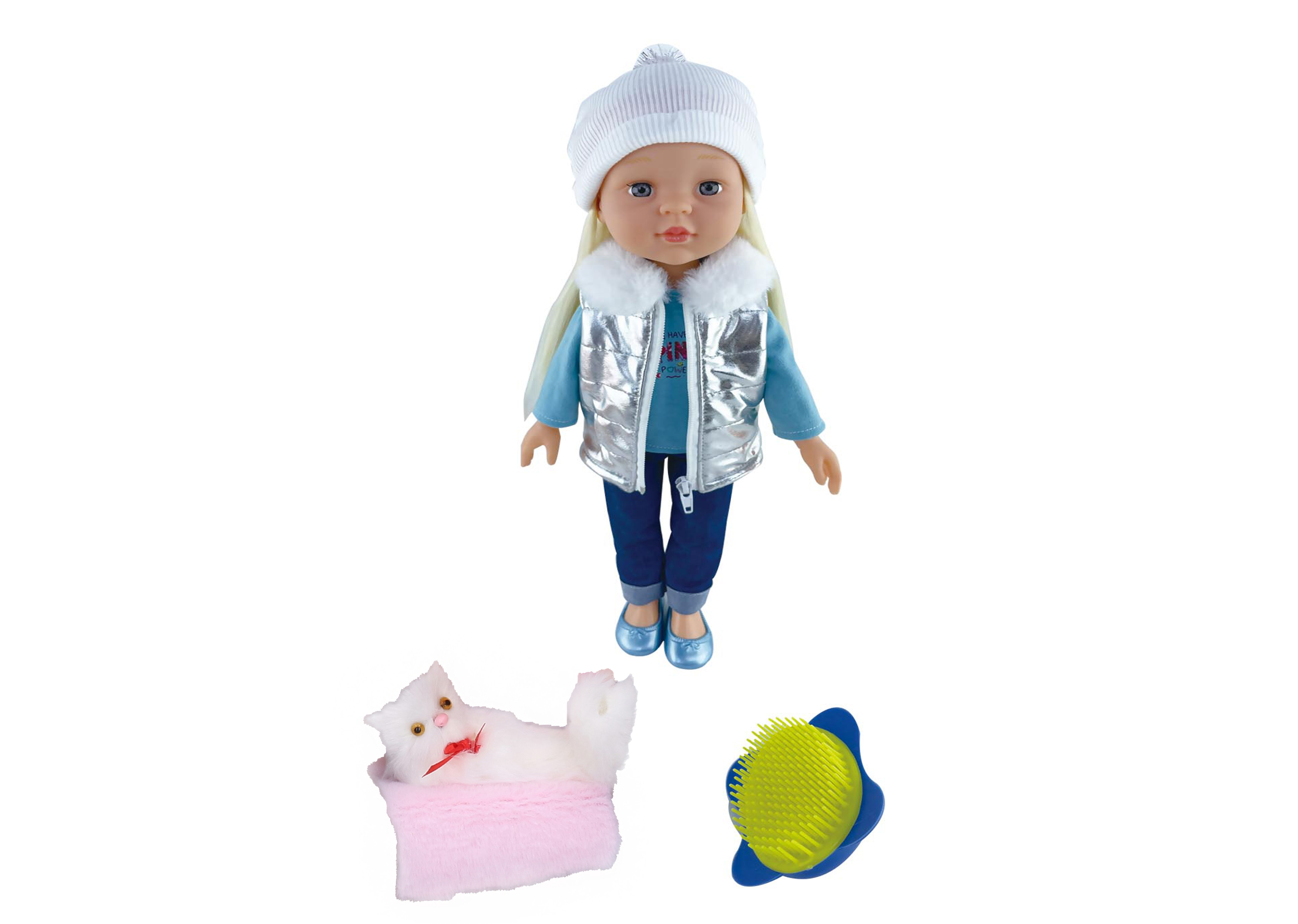 Panenka s kočkou. Velikost 43 cm. Obsah balení - panenka, hřeben na vlasy, kočka.