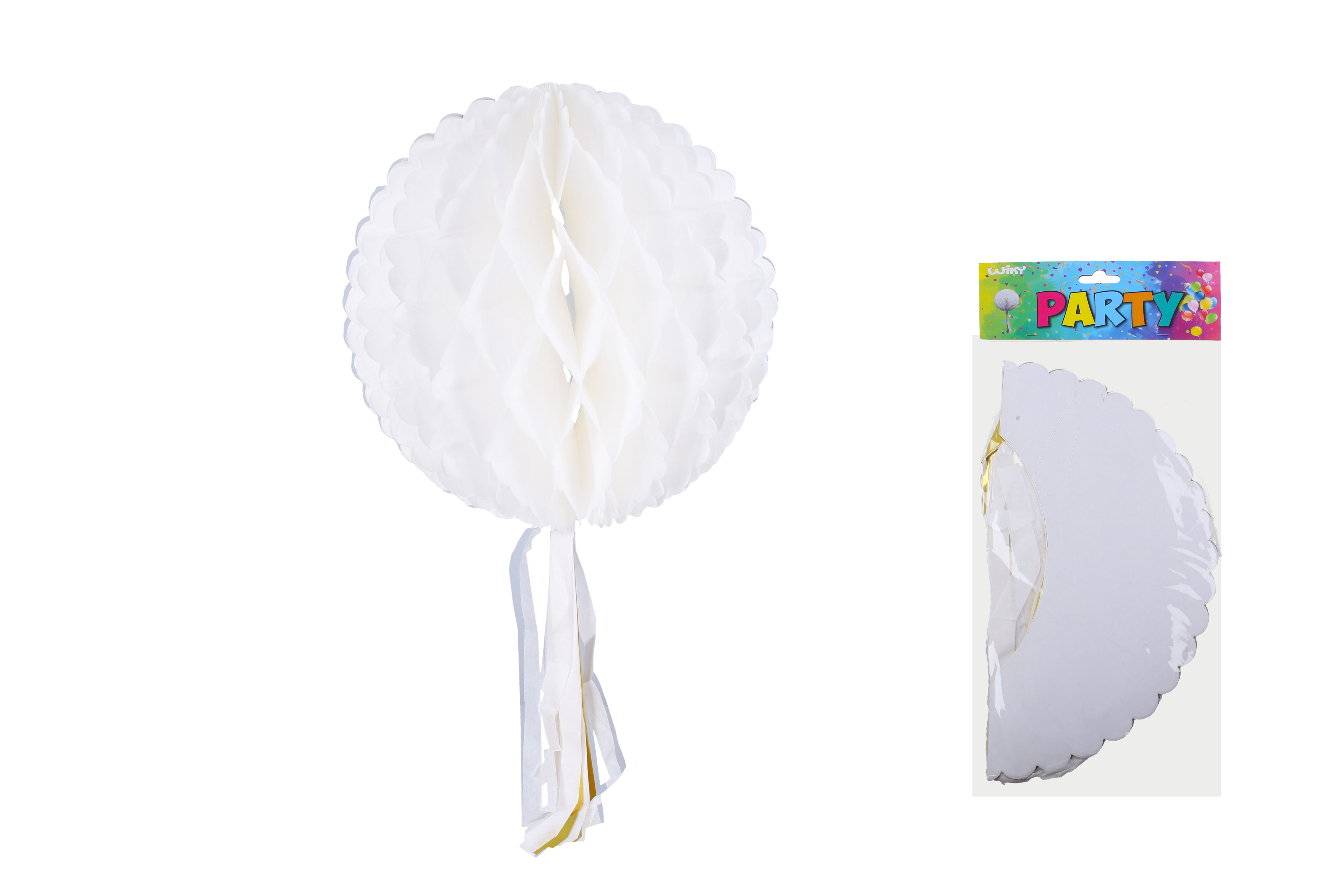 Dekorace papírová koule 30 cm na zavěšení s provázkem, bílá barva