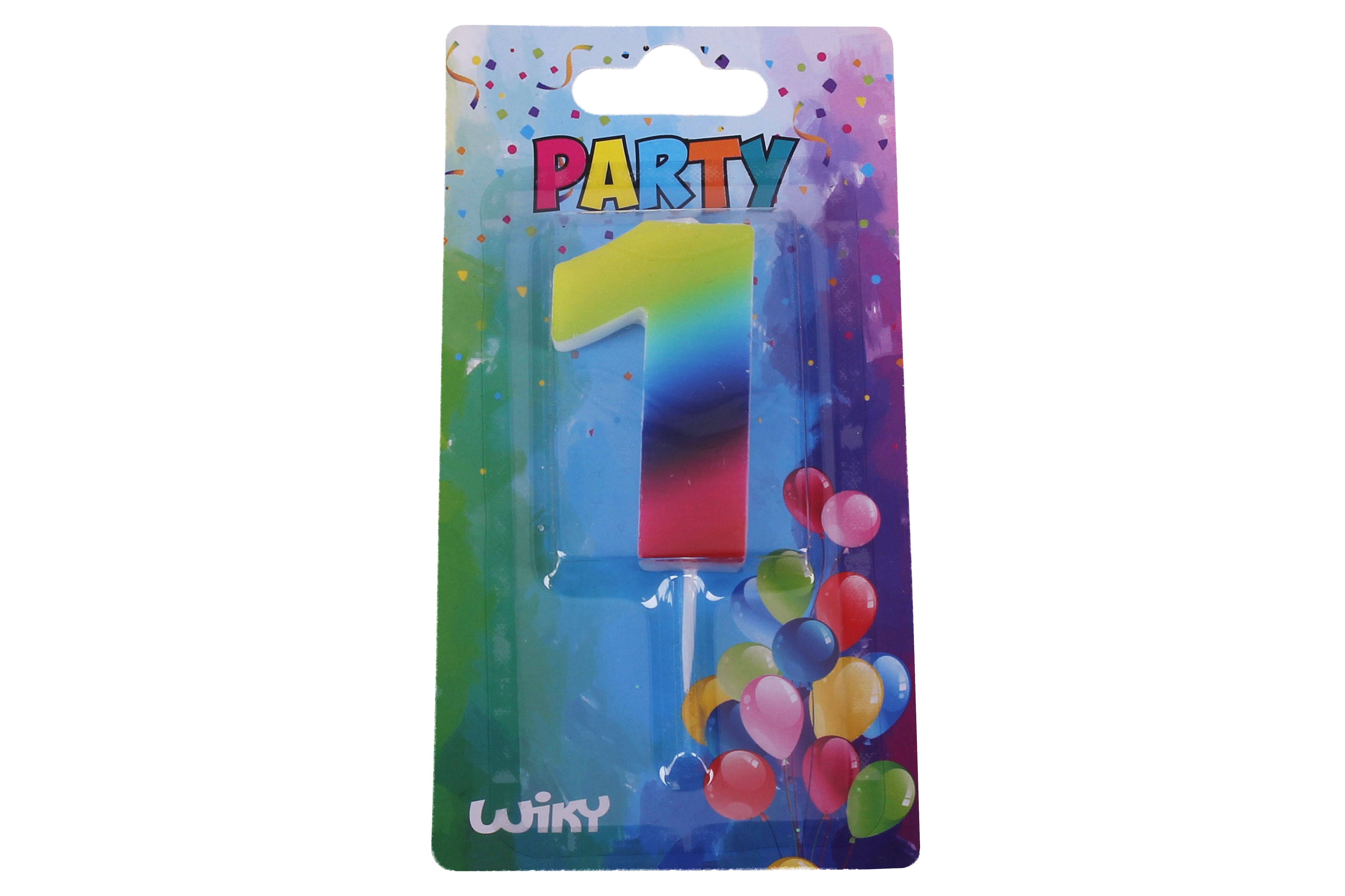 Narozeninová svíčka duhová číslo 1 se stojánkem z vosku pro pohodlné a pevné umístění na dort. Svíčky nejsou určené ke konzumaci.
