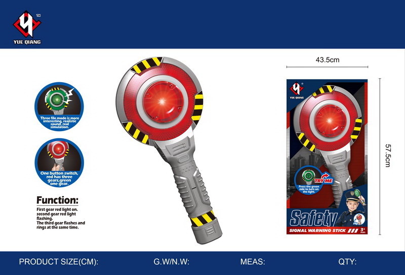 Plácačka policejní. Rozměry 24x11x3,5 cm. Jedna strana červené světlo, druhá strana zelené světlo. Světelné a zvukové efekty. Aktivace tlačítkem. 1. stisk - světlo svítí, 2. stisk - blikající světlo, 3. stisk - blikající světlo a zvuk majáku, 4 stisk - vypnutí. 3xAG13/LR44 (1.5V) baterie součástí.