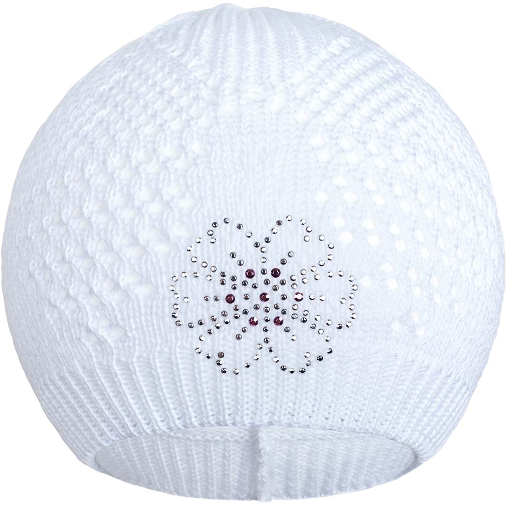Jarní pletená čepička New Baby. Čepičku zdobí obrázek kytičky, který je ozdobený třpytivými kamínky. Čepička je ušitá z prodyšného materiálu, proto je vhodná pro jarní i podzimní dny. Ideální pro malé i větší děti. Složení: 100% bavlna. Materiál je pružný. Obvod kolem hlavičky cca 40-50 cm.