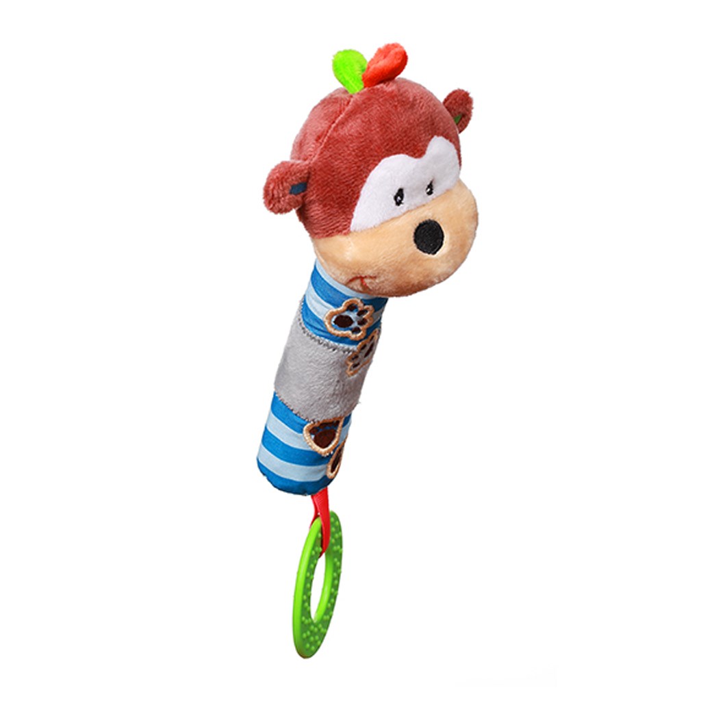 Krásná barevná hračka pro miminka Baby Ono. Hračka zvukem pískátka rozvíjí zrakovou, sluchovou a pohybovou koordinaci miminka. Tvar hračky umožňuje cvičit držení a překládání z ručky do ručky. Kousátko zmírní bolest podrážděných dásní při prořezávání zoubků. Hračka je vyrobená z kvalitního a příjemného materiálu. Výška cca 28 cm. Vhodné pro děti od 6 měsíců.