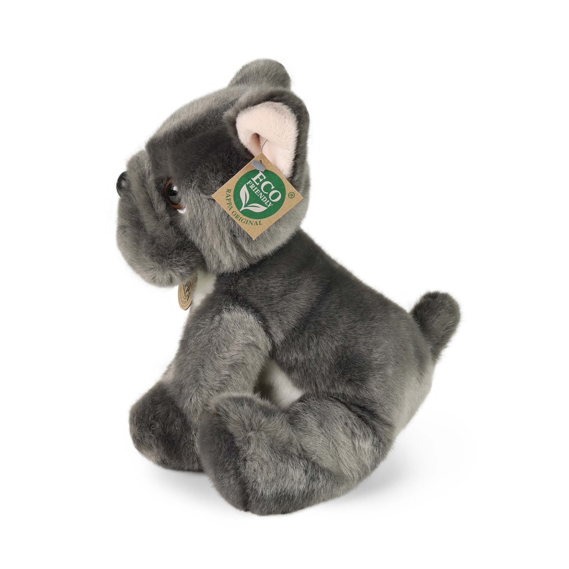 Plyšový pes francouzský buldoček o velikosti 26 cm je vyroben z exkluzivní, velmi kvalitní plyše. Tento senzační plyšový kousek je ideální i jako dárek! Plyšový pejsek je součástí exkluzivní kolekce plyšových hraček RAPPA. Co to vlastně ECO-FRIENDLY znamená? Výplň plyšové hračky je vyrobena z recyklovaných PET lahví. Tento materiál je zcela bezpečný, na omak nerozeznatelný od standardní výplně a plně atestovaný pro bezpečnost i těch nejmenších. Rozhodli jsme se jít zelenou cestou co nejméně zatěžující životní prostředí- cestou ECO-FRIENDLY.