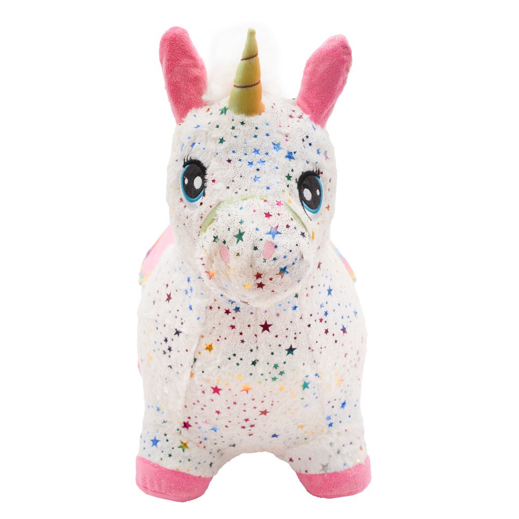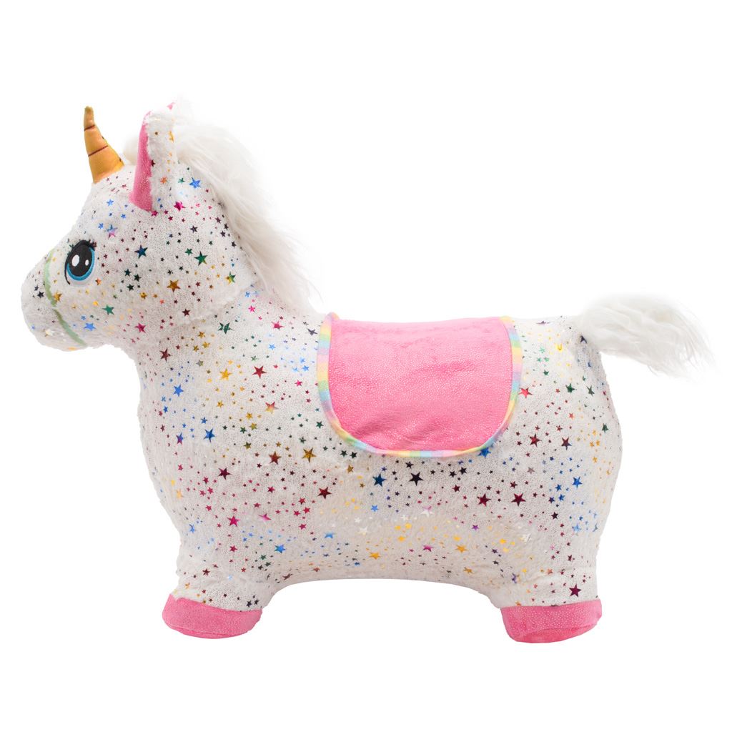 Plyšové nafukovací hopsadlo je zárukou dlouhotrvající zábavy pro Vaše dítě. Při hopsání dítě posiluje nohy, učí se koordinovat pohyby a držet stabilitu. Hopsadlo se pohodlně drží za uši a obsahuje zvukový modul, který po zmáčknutí mezi ušima vydává realistický zvuk koníka. Je potaženo plyšovým materiálem, který je příjemný na dotek a neklouže. Součástí balení je pumpička k pohodlnému nafouknutí a baterie (3xLR44).