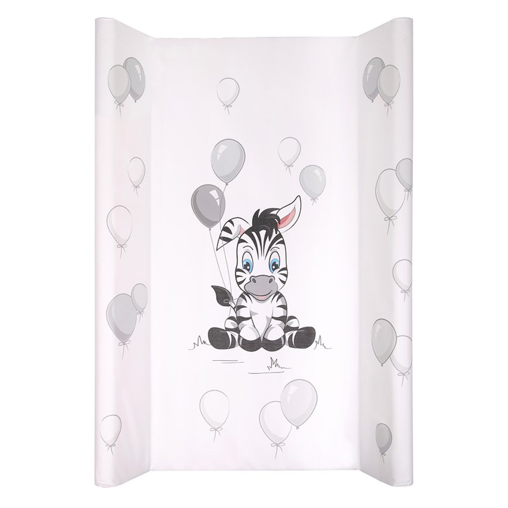 Praktický tvarovaný přebalovací nástavec New Baby z nepromokavého, plastového materiálu s obrázkem zebry v příjemných pastelových barvách. Nástavec je vyplněn polyesterem a má vyvýšené boční strany. Nástavec má spodní tvrdou desku, lze ho přišroubovat na postýlku nebo umístit na přebalovací stojan. Je vyroben z nejkvalitnější certifikované fólie, která neobsahuje žádné škodlivé látky a je citlivá k nejjemnější dětské pokožce. Rozměr: cca 50x70 cm, tloušťka cca 2,5 cm, výška hran 8,5 cm.
