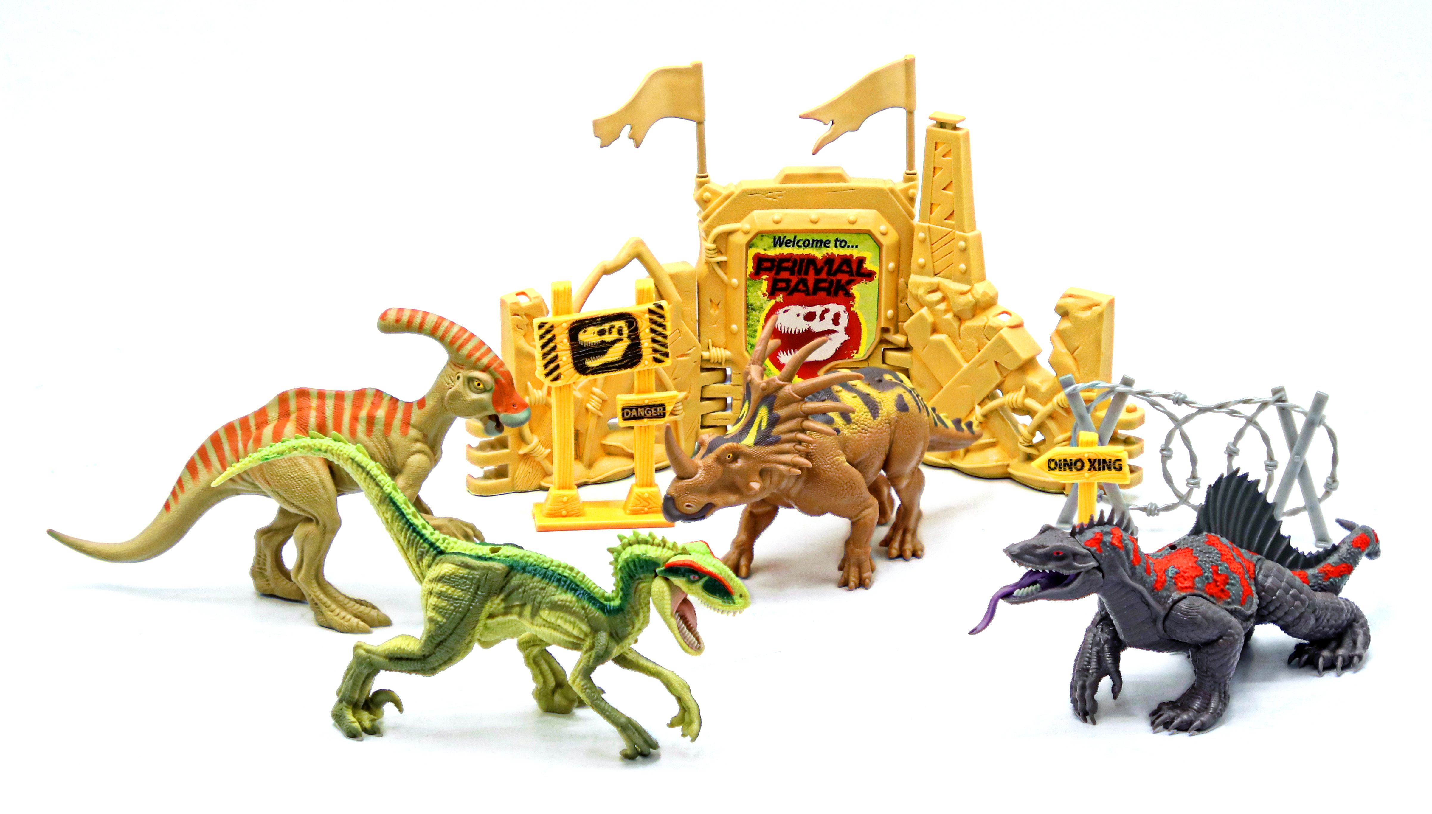 Primal Clash! Bitva dinosaurů. Velikost dinosaurů 17 cm. 2 varianty - Raptor VS Styracosaurus, Parasaur VS Trimetrodon. Sada obsahuje v dinosaury. Pohyblivá čelist.