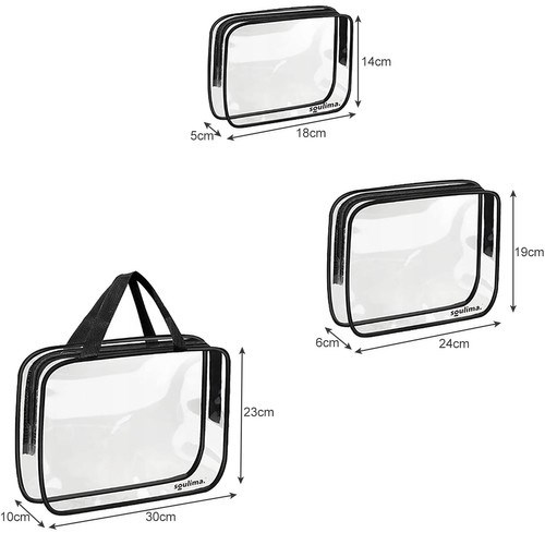 Sada našich kosmetických taštiček na zip vám pomůže snadno uspořádat všechny toaletní potřeby nebo make-up a zorganizovat váš zavazadlový prostor. Každá taštička má jiné rozměry, takže jejich využití můžete přizpůsobit svým potřebám a efektivněji využít místo v kufru. Průhledný materiál umožňuje kontrolu obsahu bez otevírání, což je obzvlášť praktické na letištích. Voděodolnost zaručuje, že obsah zůstane uvnitř a nepoškodí ostatní zavazadla. Největší taštička má pohodlné úchyty, díky nimž ji lze nosit jako kabelku. Ideální na dovolenou, krátké výlety, do posilovny, na bazén, trénink i pro domácí použití.