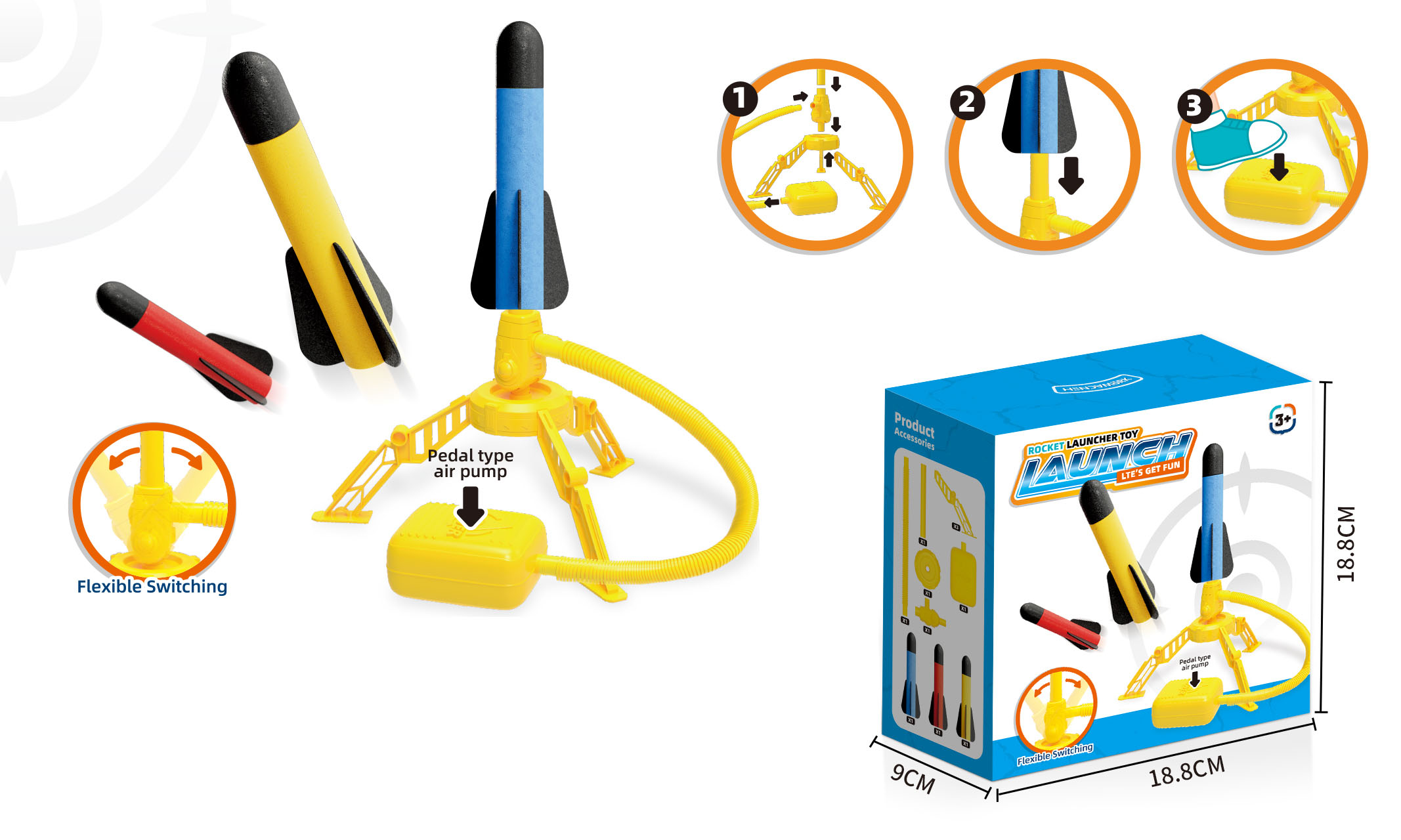 Rakety vystřelovací 3 ks set. Součástí 3 rakety, nášlapné odpaliště.