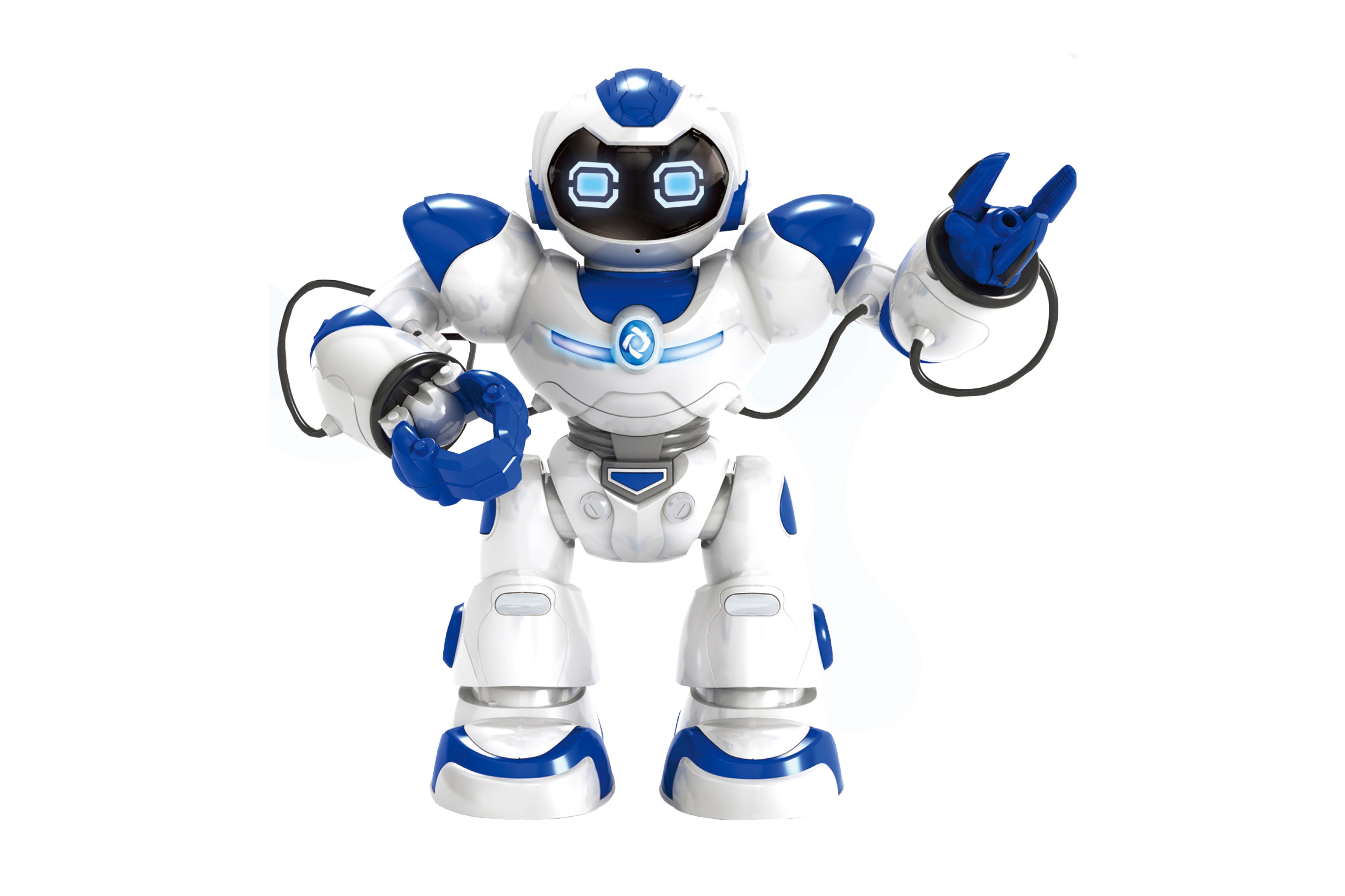 Robot střílející míčky RC na dálkové ovládání. Rozměry 36x17x40 cm. Infračervený port. Vydává světelné a zvukové efekty. Funkce - střílí míčky z levé ruky, drží předměty v pravé ruce, podsvětlený obličej, programování, chůze, tanec, hudba, demo režim, nastavení hlasitosti. Součástí 3 míčky. 5xAA (1.5V) baterie do robota, 2xAA (1.5V) do ovladače nejsou součástí.