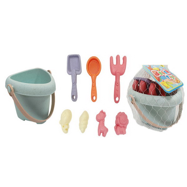Sada na písek 8 ks. Obsahuje kyblík 13x13x9,5 cm, lopatku, hrabičky, sítko, 4 formičky. Více variant formiček.