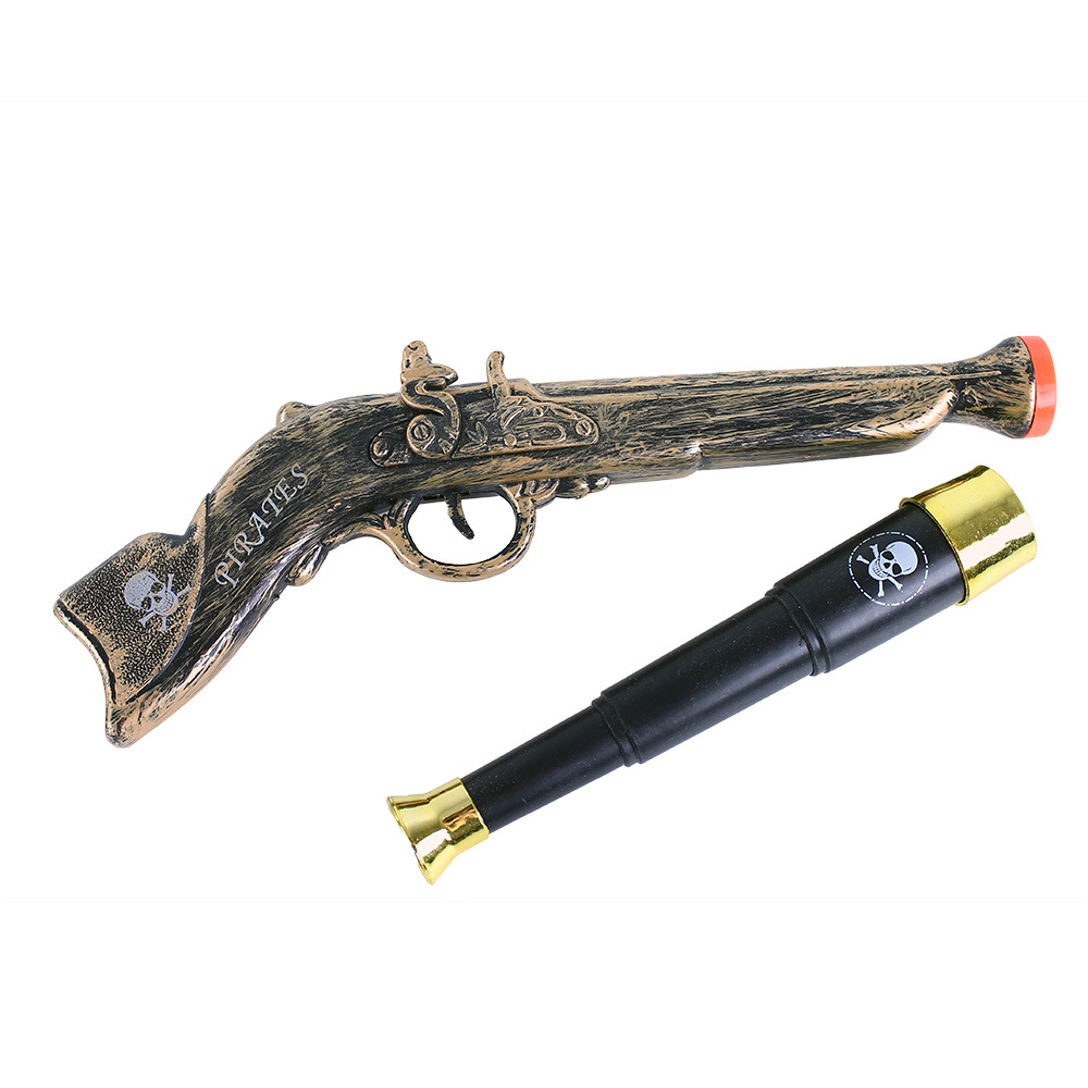 Staň se opravdickým pirátem díky těmto senzačním doplňkům! Balení obsahuje pušku a pirátský dalekohled. Vše je vyrobeno z PVC a baleno v krabici.