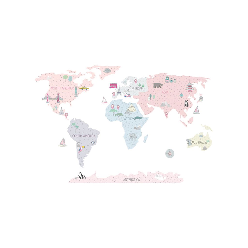 Krásná nálepka na zeď Mapa M. Růžové mapy světa jsou produkty nejvyšší kvality, vyrobené s maximální péčí a pozorností k detailům, udržované v tlumených skandinávských barvách, které dokonale zapadnou do prostoru dítěte. Mapy jsou nejen jedinečnou dekorací, ale také senzačním způsobem učení hrou. Děti poznávají kontinenty, oceány a světové strany, ale i památky a zajímavosti daného regionu či státu. Každý prvek mapy je pečlivě vyříznut z obrysu a nalepen samostatně, což usnadňuje aplikaci, zejména v případě velkých prostor. Velikost samolepky se měří po její aplikaci na zeď, přičemž kontinenty jsou od sebe v patřičné vzdálenosti. Samolepka je zajištěna speciálním matným laminátem, který ji chrání před poškrábáním při každodenním používání a zároveň usnadňuje lepení – fólie je silnější a snáze se přenáší na zeď. Pokud hledáte dokonalý způsob, jak oživit dětský pokojíček, naše samolepky na zeď jsou tou správnou volbou. Objednejte si je ještě dnes a udělejte radost svému dítěti.