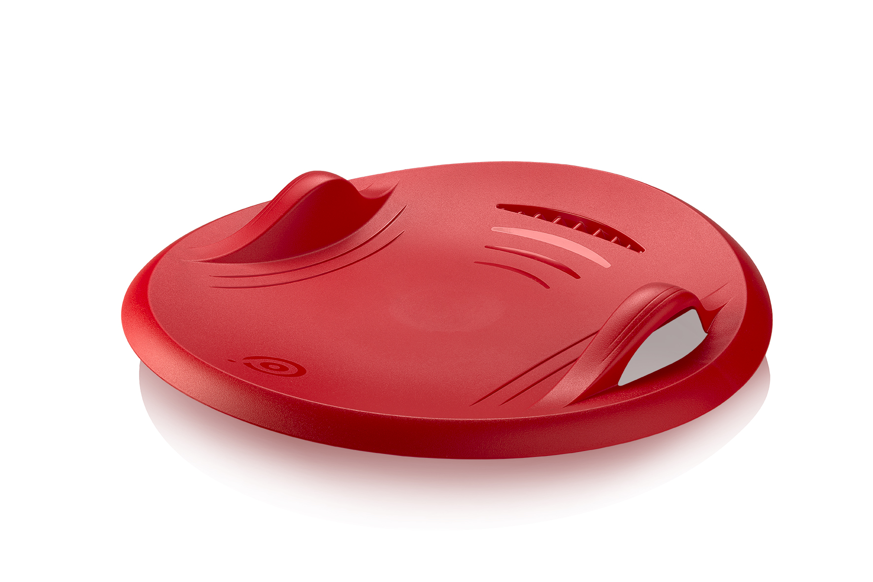 Sáňkovací talíř Supernova červená. Průměr 70 cm. Váha 1,19 kg. Nosnost 100 kg. Provozní teplota -20 až 70 °C. Zatáčení díky naklonění do strany, brzdění zakloněním. Rukojeti integrované do obvodu talíře. Protiskluzová úprava povrchu.