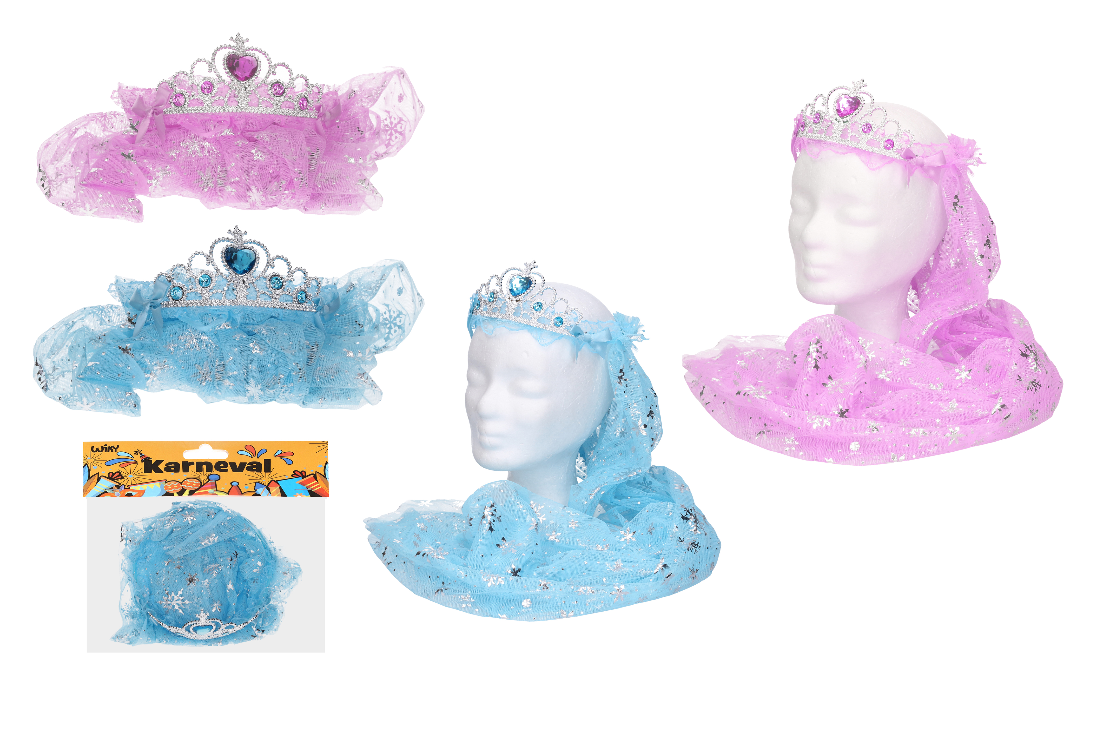 Čelenka se závojem na karneval. Modrá a růžová barva.