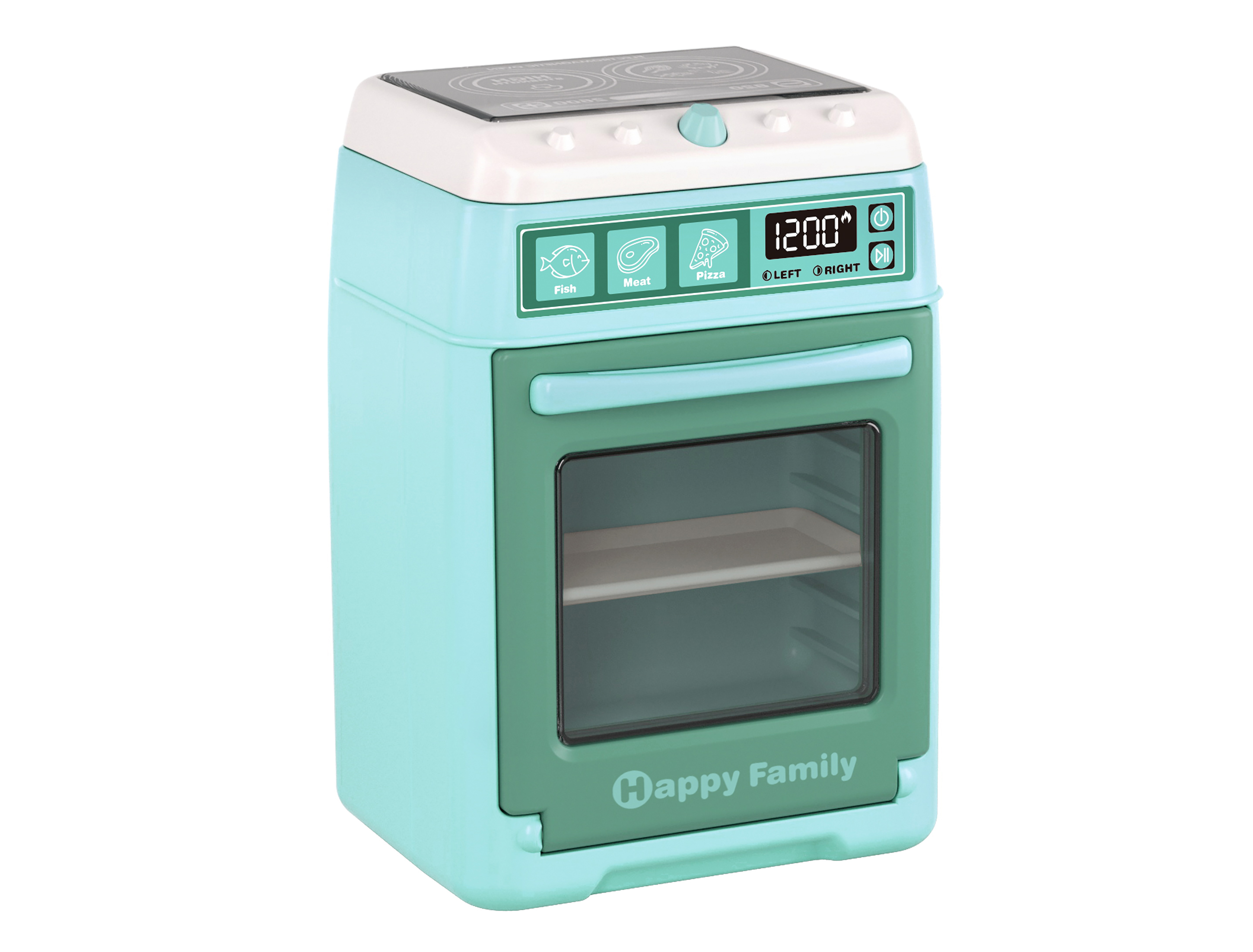 Sporák a trouba s efekty. Velikost 14 cm. Vydává světelné a zvukové efekty. Baterie 3xAA nejsou součástí balení. Přesné rozměry 11x9x14 cm.