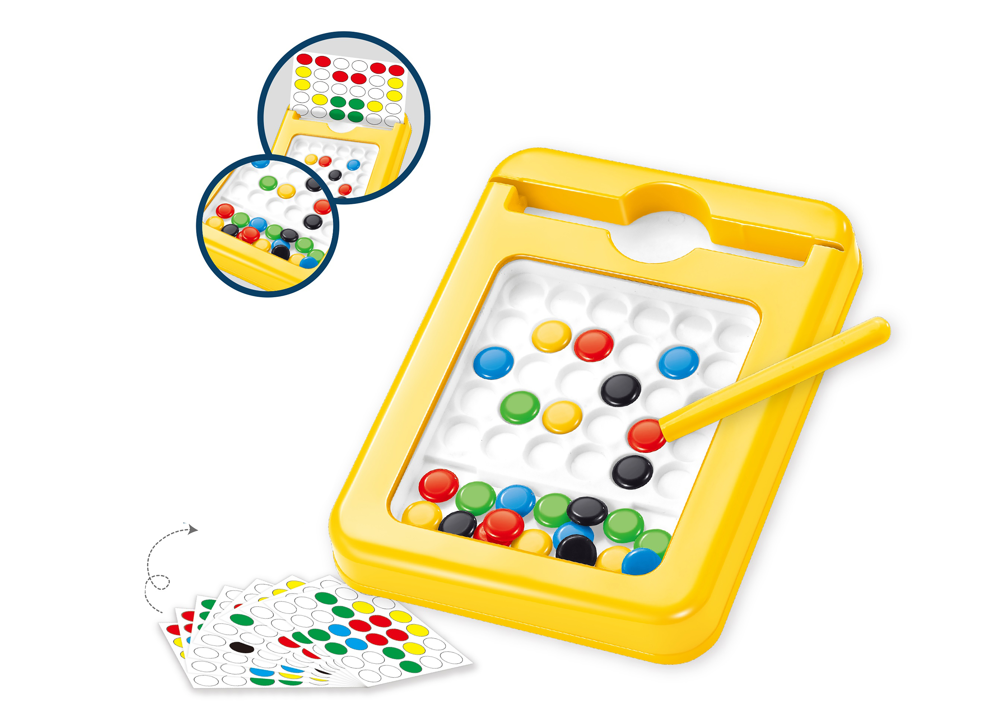 Tabulka s barevnými magnetkami. Rozměry 12,3x2,3x16,5 cm. Balení obsahuje tabulku, 30 magnetek, 8 karet se vzory.