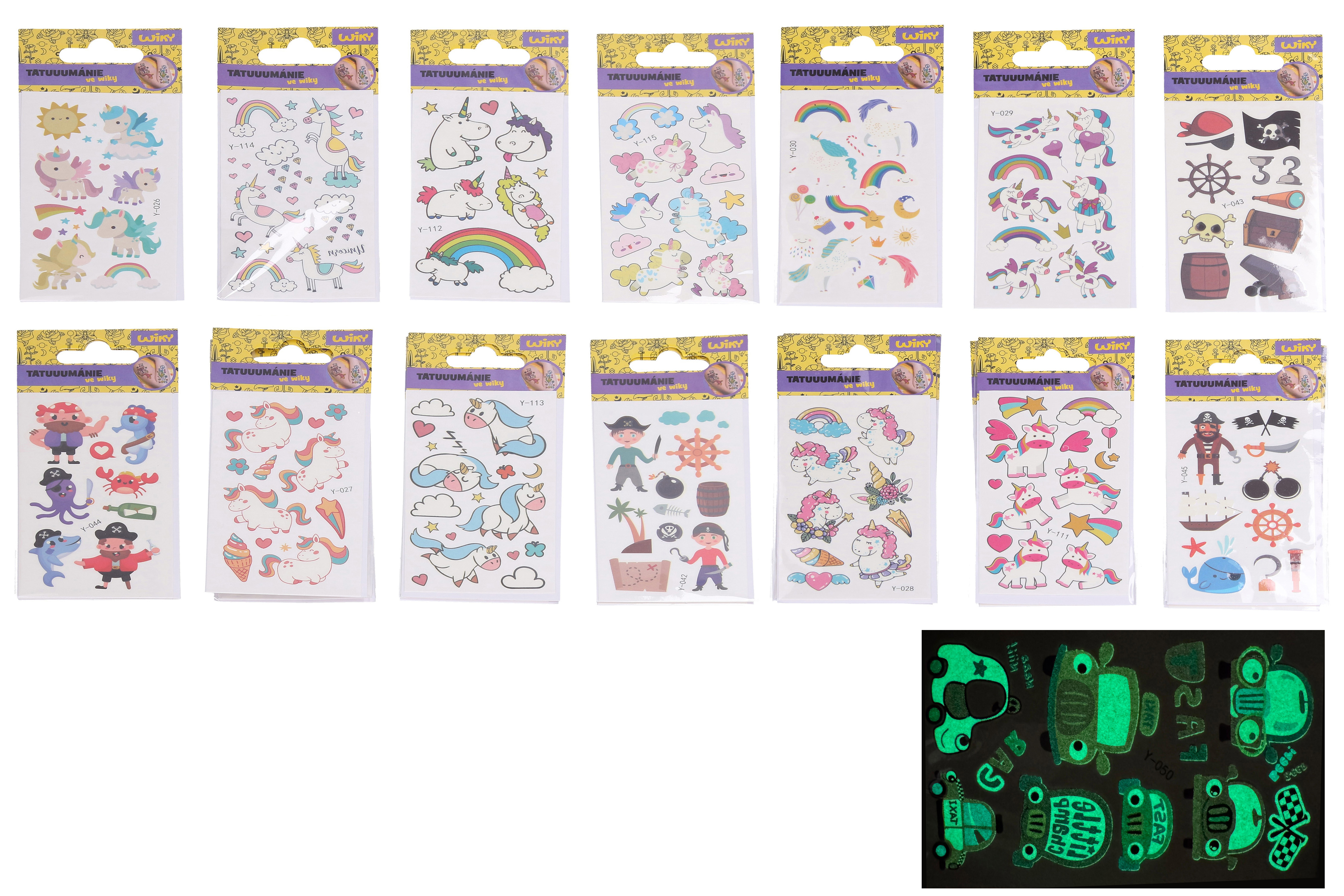 Tetovací obtisky o velikosti 6x10,5 cm svítící ve tmě.