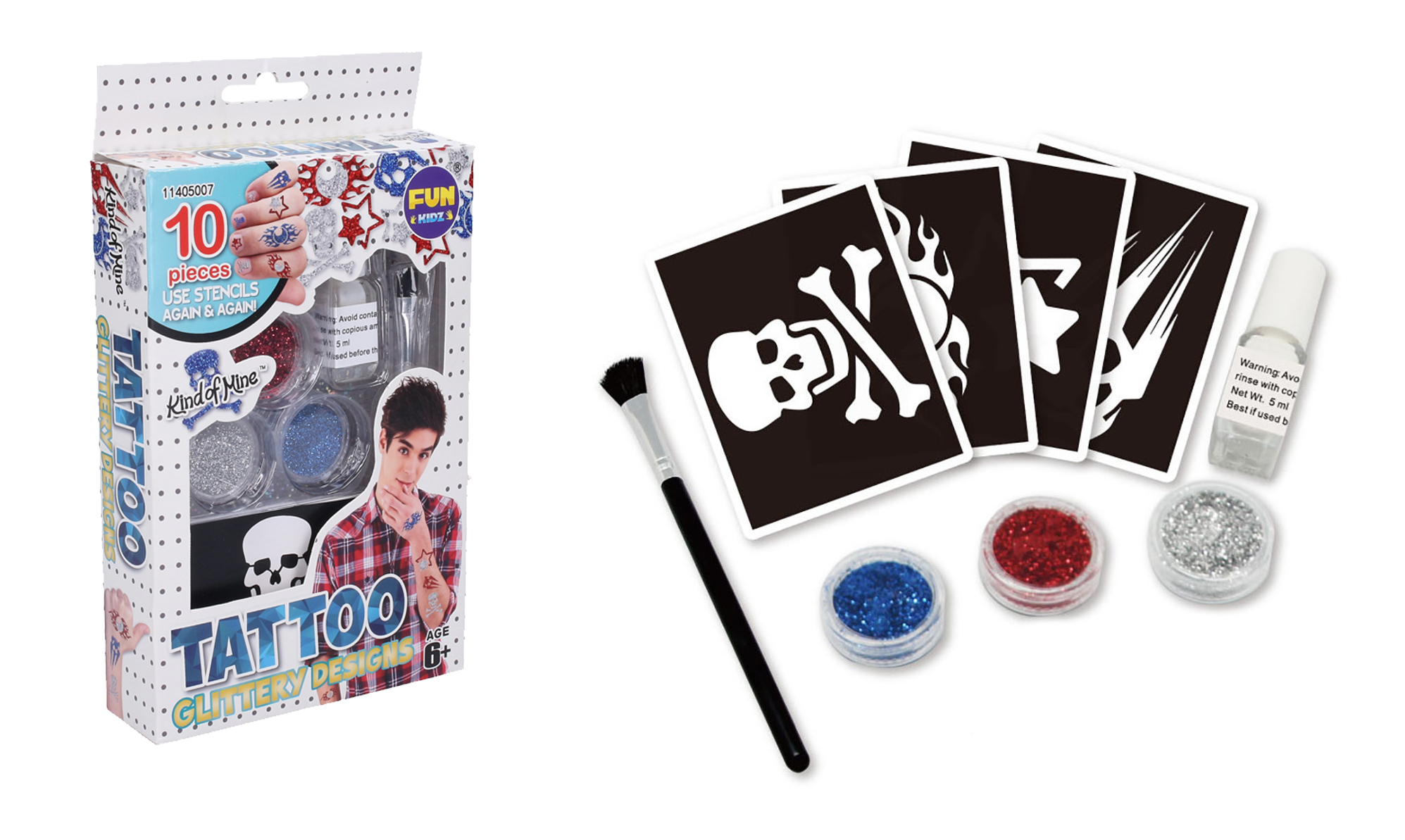 Vytvoř si vlastní originální tetování se třpytkami s tímto parádním setem! Díky cool tetovačce zazáříš mezi kamarády!