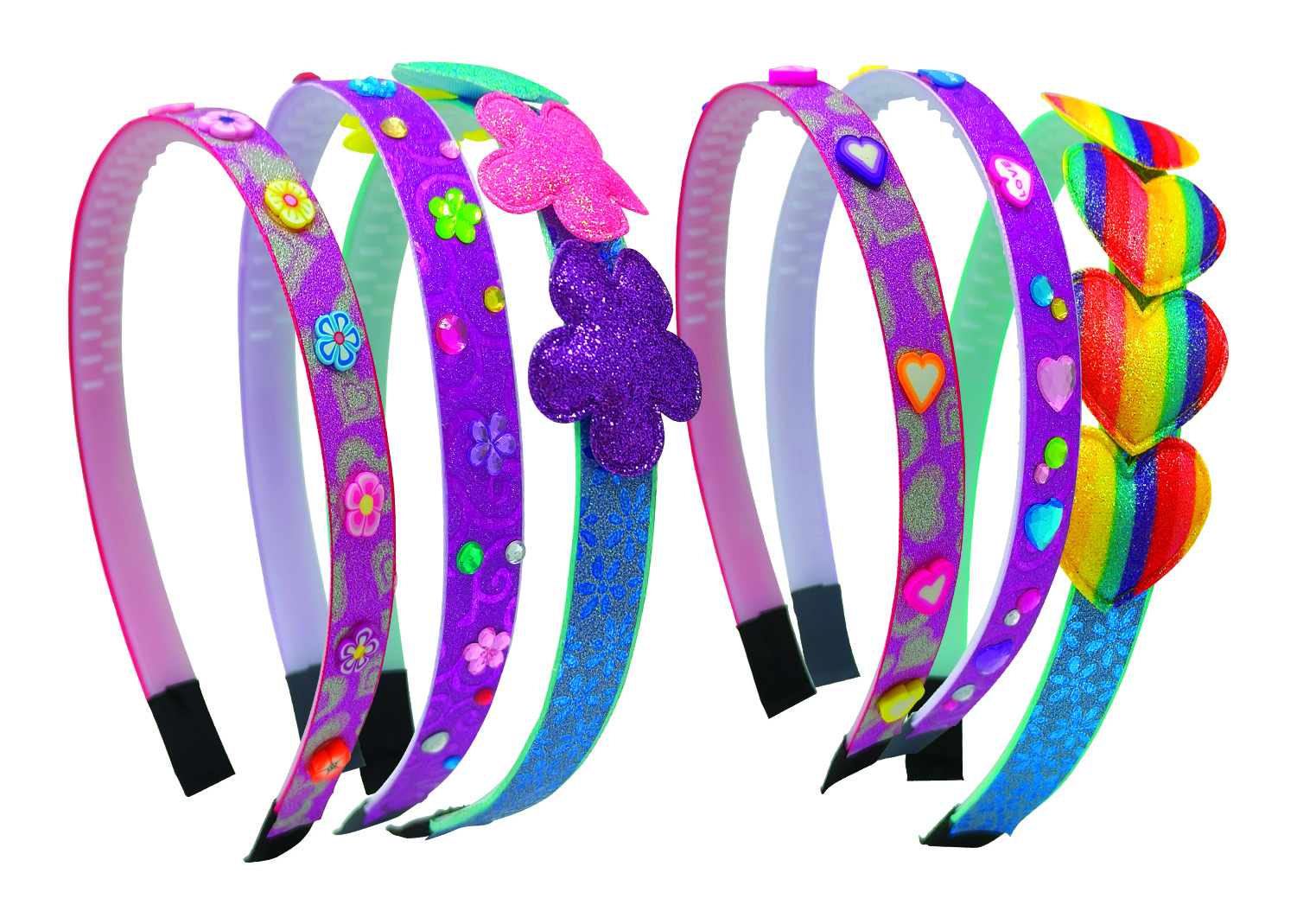 Tvorba čelenek set. Obsahuje 3 čelenky, ozdoby a barevnou pásku, oboustrannou lepicí pásku, lepidlo. 2 varianty - srdíčka. květy. 8ks v display boxu.