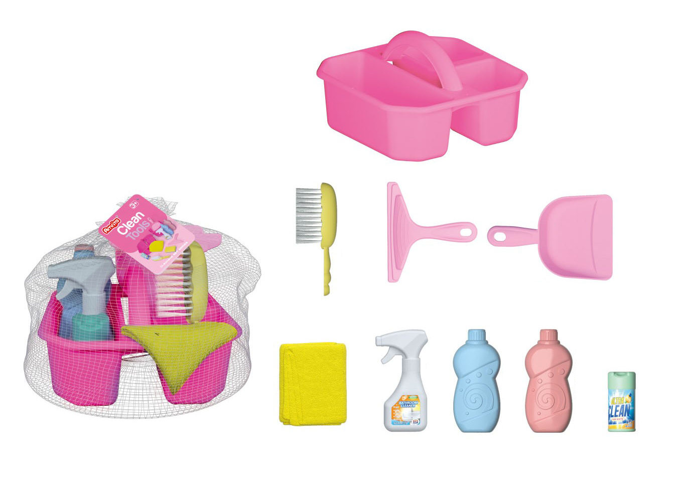 Úklidový set 9ks. Obsahuje vaničku na přenášení, lopatku a smetáček, stěrku, hadřík, čisticí prostředky.