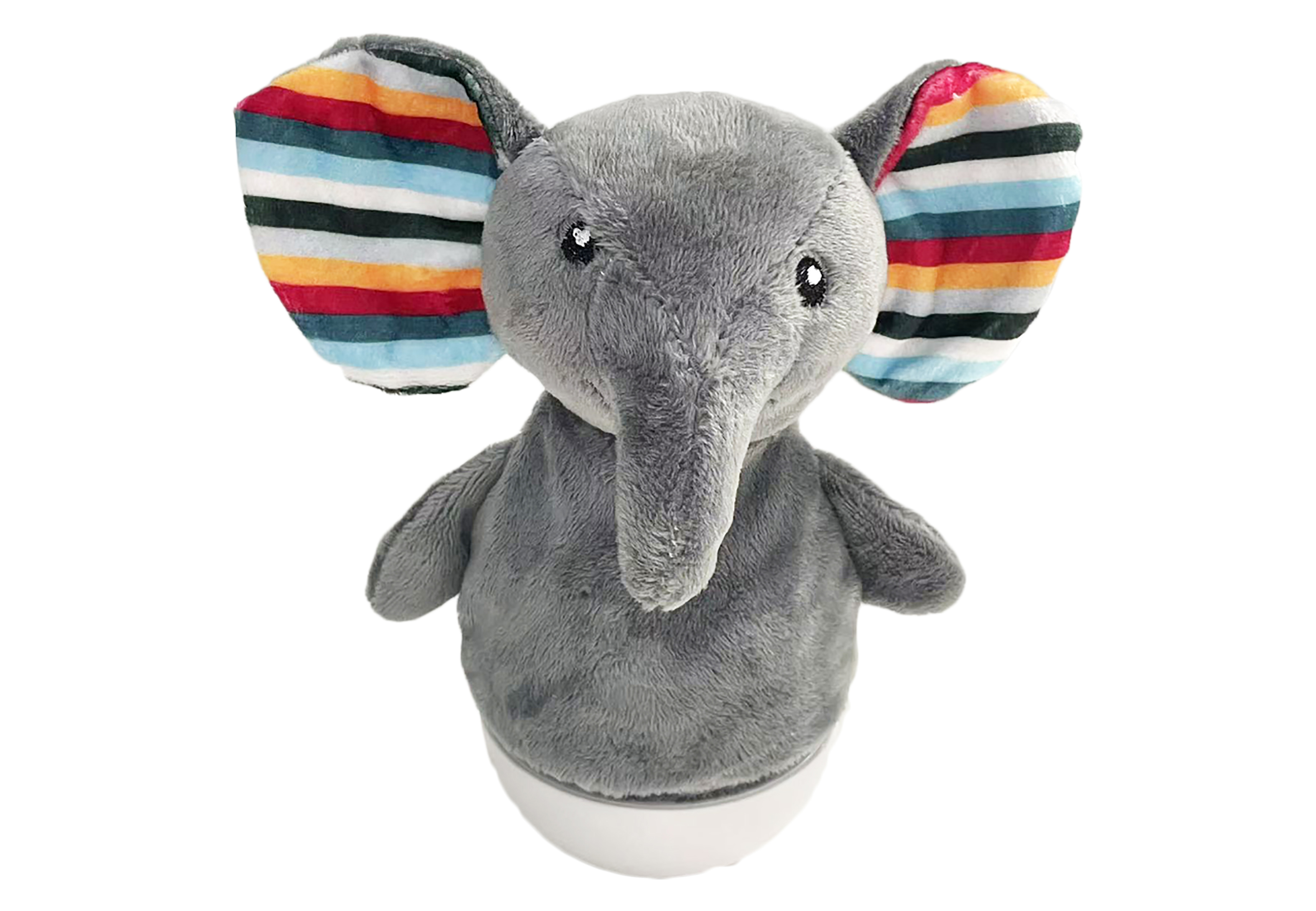 Usínací slon Roly Poly s efekty. Velikost 16 cm. Baterie 3xAAA nejsou součástí. Tlačítko on/off. Tlačítko na zvukové efekty. Světelné a zvukové efekty.