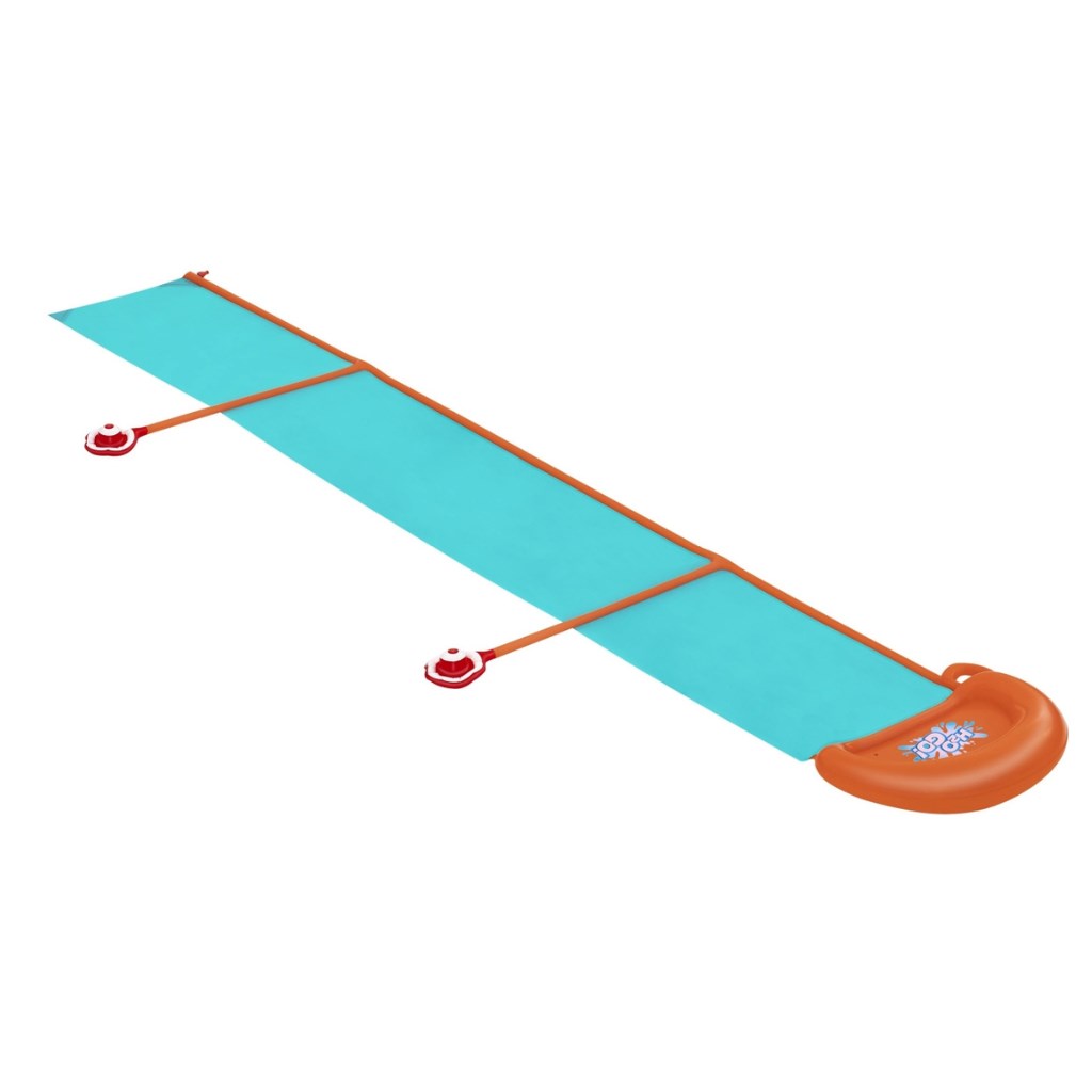 Jednoduchá skluzavka StompBlast je skvělá pro letní zábavu na zahradě. Ideální pro děti od 3 let, tato skluzavka s jedním pruhem má spršky, které se aktivují na požádání, když děti šlápnou na podložku StompBlast™, aby postříkaly kamarády při závodu do cíle. Vestavěné spršky SplashBoost pokrývají celou délku skluzavky a zajišťují cílené zvlhčení pro maximální kluzkost, stříkání a šplíchání.