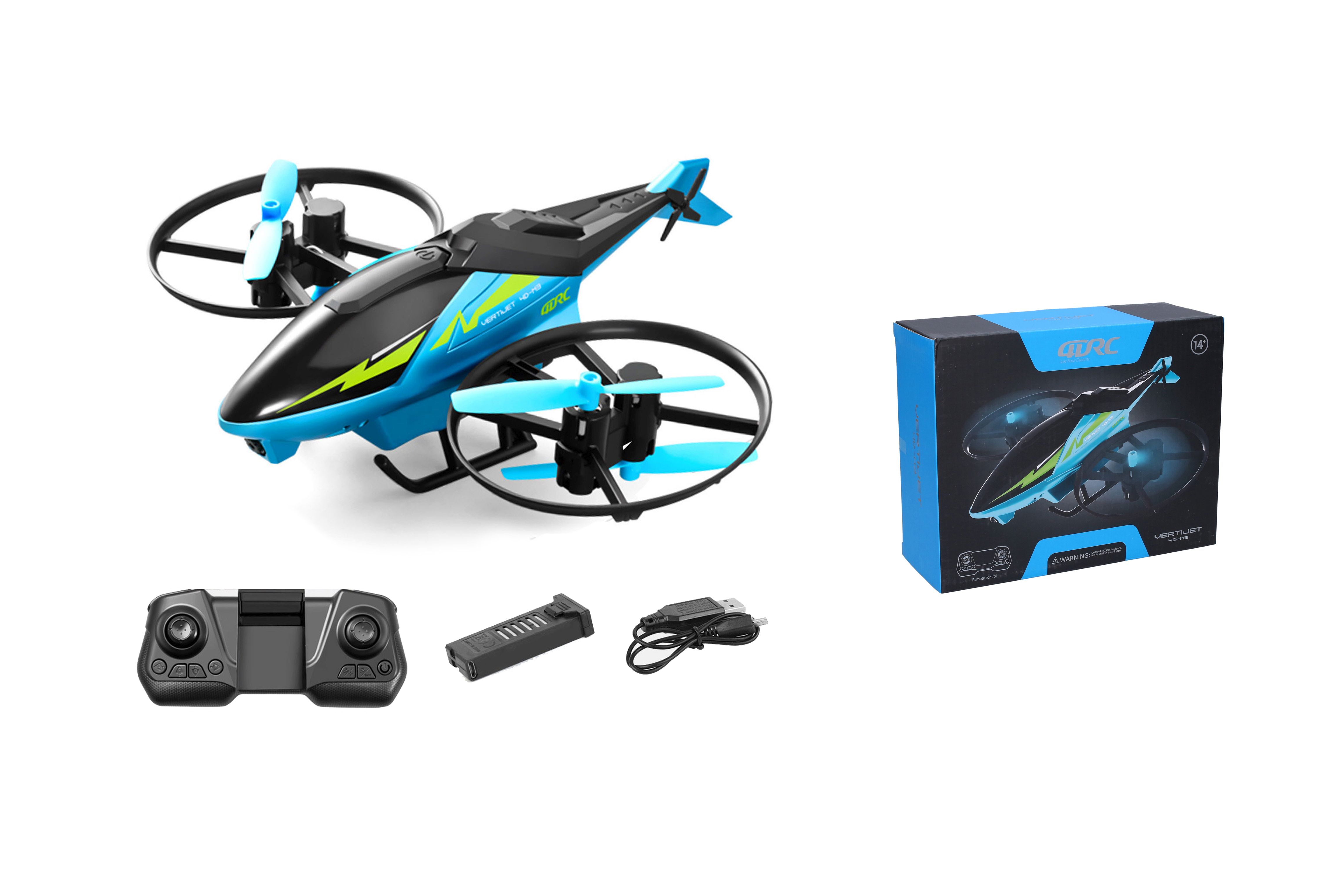 Vrtulník RC na dálkové ovládání. Bez kamery. Rozměry 18x17x6 cm. Frekvence 2.4GHz. 3.7V 500mAh bateriový pack do vrtulníku součástí, 3xAAA do ovladače nejsou součástí. USB kabel součástí. Provoz 6 min, nabíjení 90 min, dosah ovladače 80-100 m. Funkce - pohyb na místě, obrat o 360 stupňů, návrat do výchozí polohy. Tlačítko ON/OFF na vrtulníku a na ovladači.