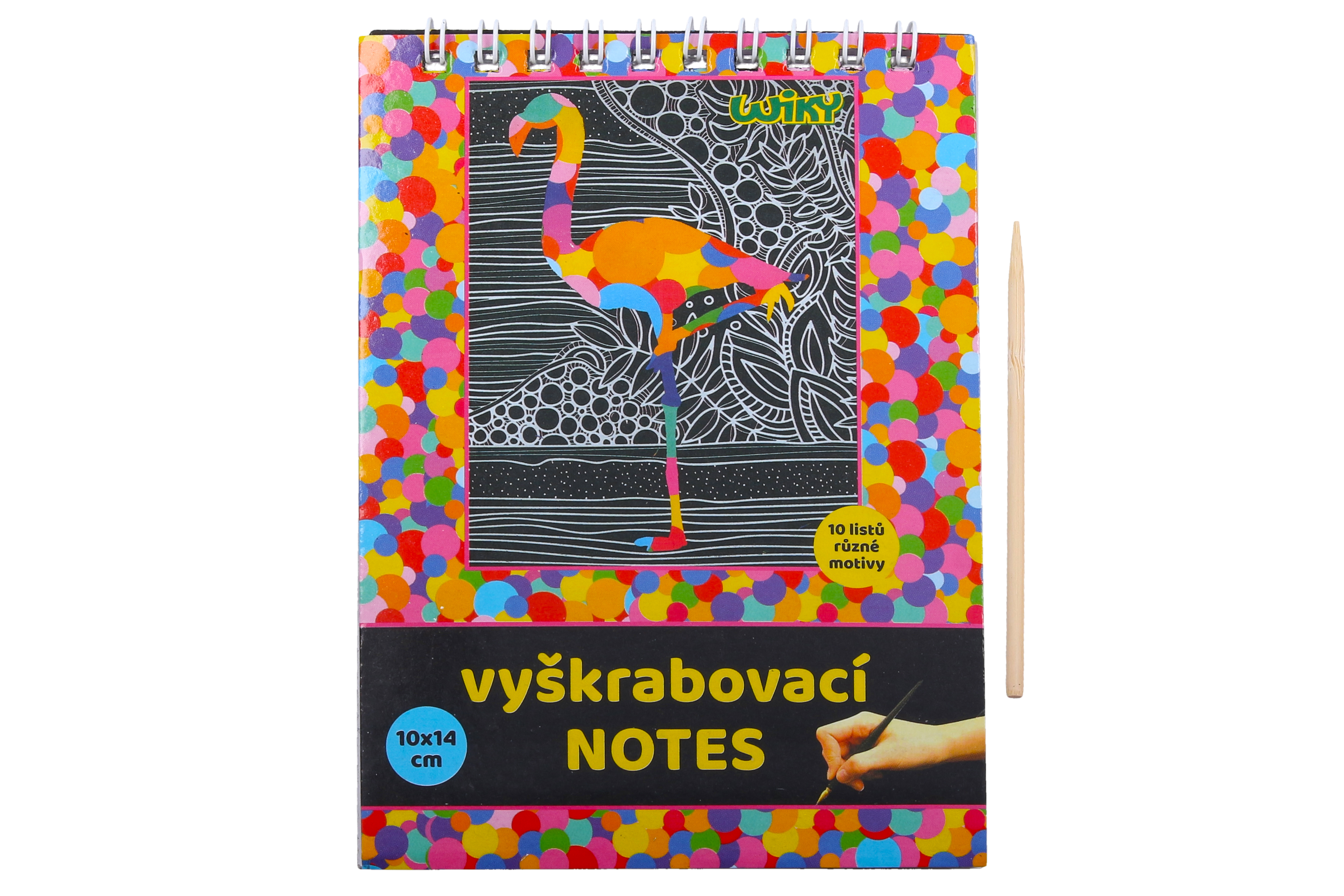 Kreativně se vydovádějte na vyškrabovacím notesu, který má rozměry 10x14 cm. Na jednotlivých listech, můžete pomocí vyškrabovacího pera vytvářet různé pestrobarevné obrázky.