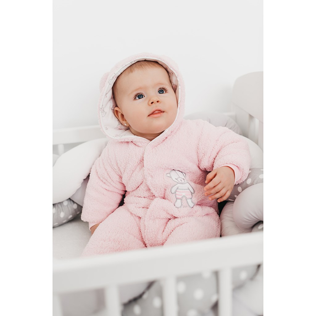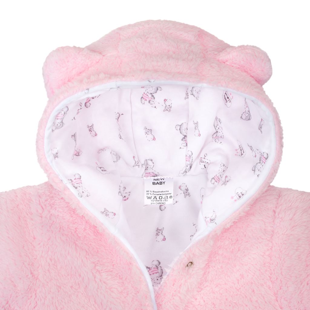 Praktická zimní kojenecká kombinézka s kapuckou New Baby Nice Bear pro Vaše miminko. Zimní kombinézka je vyrobena z dvou vrstev kvalitního materiálů - vrchního hrubšího, hřejivého fleecového materiálu a spodní bavlněné podšívky. Kombinézku zdobí obrázek medvídka. Má praktickou kapuci s roztomilými oušky a teploučké rukavičky na šňúrce. Zapínání na cvočky po celé délce a mezi nožičkami, usnadní oblékání a přebalování. Klademe důraz na kvalitu a proto se díky příjemňočkému, měkkému a kvalitnímu materiálu, bude Vaše miminko cítit velmi příjemně a v teploučku. Složení: vrchní vrstva 80% bavlna, 20% polyester, podšívka: 100% bavlna, výplň: antialergické vlákno. Rozměry: obvod kolem hrudníku cca 60 cm, délka růkávu cca 22 cm, celková délka cca 57 cm, délka rukaviček cca 12 cm.