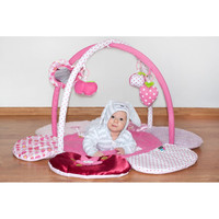 Hermosa y original alfombra de juego educativa PlayTo con arco, que desarrolla la imaginación de los bebés a través del reconocimiento de colores y formas. La alfombra de juego tiene forma de florecita y viene en un hermoso color brillante. Estimula los sentidos del tacto, la vista y el oído gracias a las partes crujientes y móviles. Suave y agradable, permite una cómoda posición de boca abajo o de espalda, brindando libertad de movimiento a su bebé. Así, el pequeño puede disfrutar de un espacio acogedor y seguro, lo que lo motiva a levantarse. Las juguetes se pueden quitar fácilmente del arco. Cada bebé encontrará su juguete favorito en la alfombra, que incluye un espejo, partes que crujen, un peluche con sonajero, un peluche con mordedor y un peluche con campanita. Puede usarse tanto en casa como al aire libre. Gracias a su diseño sencillo y a la bolsa proporcionada, la alfombra se puede transportar fácilmente. Los juguetes se pueden desenganchar y usar de forma independiente. Proporcione a su bebé un lugar encantador para jugar y descansar. Para PlayTo, su satisfacción y la comodidad de su bebé son importantes. Por eso, le ofrecemos esta adorable, cómoda y muy suave alfombra de juego. La esponjosa florecita proporciona un confort perfecto para el bebé. La alfombra garantiza una base ideal para los pequeños que están empezando a gatear. Cuando no esté en uso, se pliega fácilmente para protegerla del polvo o posibles daños. Puede desplegarla de nuevo en un minuto. Dimensiones: diámetro: aproximadamente 100 cm, altura: aproximadamente 54 cm. Adecuado para bebés a partir de 3 meses.