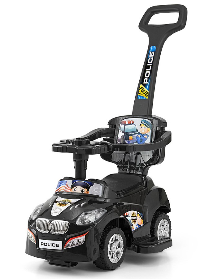 Andador para bebés Milly Mally Happy. El cochecito tiene en el volante un botón que, al encenderse, reproduce melodías, y otro botón que emite el sonido de un claxon. El andador se puede utilizar como una patineta o, al añadir una barra de guía, como un escalón para los pies y un manillar que permite llevar al niño y mantenerlo bajo control. Está fabricado con material plástico de alta calidad. Es un juguete excelente y seguro. La forma del juguete ayuda a desarrollar las habilidades motoras del niño en el momento en que comienza a caminar. Los bordes redondeados y las ruedas resistentes garantizan la seguridad durante el juego. Las baterías no están incluidas.