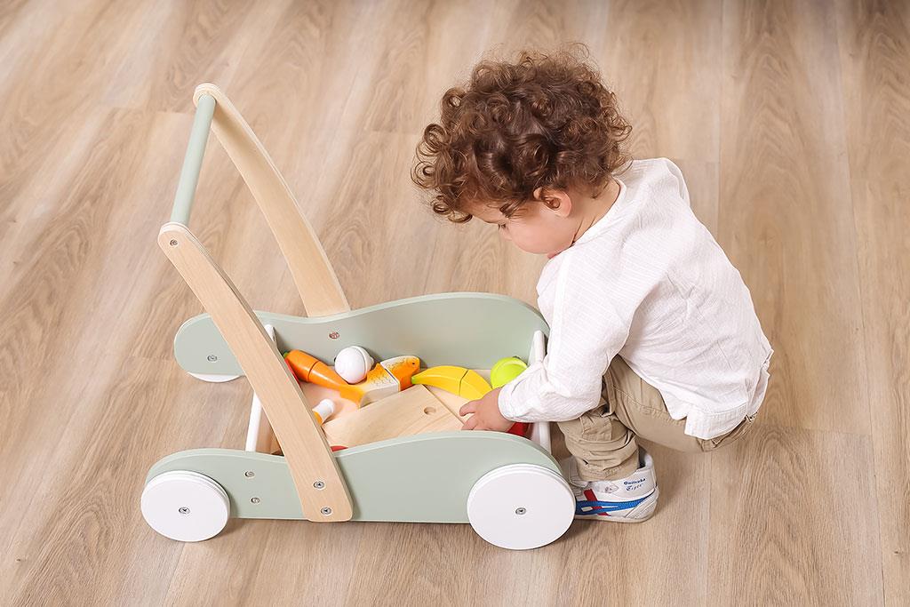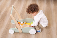 Además, este juguete de diseño simple está equipado con grandes ruedas antideslizantes y un mango estable y firme. Su gran espacio de almacenamiento permite transportar juguetes de diferentes tamaños y cantidades.