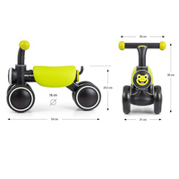 Patinete Infantil YORK es el medio de transporte perfecto para los más pequeños, combinando seguridad, comodidad y un diseño atractivo. Gracias a su construcción estable de cuatro ruedas, los niños pequeños pueden lanzarse con confianza a su aventura sobre ruedas, aprendiendo el equilibrio y desarrollando la coordinación motora de manera natural y divertida. Su marco ligero facilita el transporte y la maniobrabilidad del patinete, mientras que el asiento cómodo y suave garantiza confort incluso durante largas sesiones de juego.
