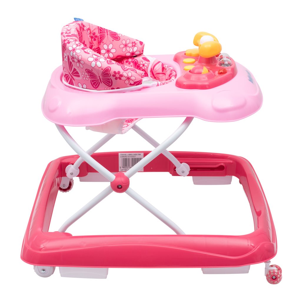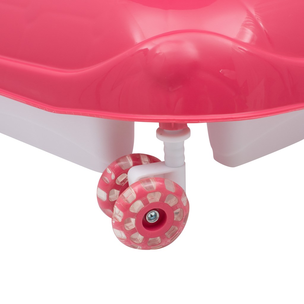 Caminador multimedia Baby Mix con ruedas de silicona. El caminador está equipado con un asiento cómodo y ergonómico que asegura una correcta postura de la columna vertebral. El panel multimedia incluye diversos efectos de luz, un volante que suena y que se puede girar, botones para reproducir melodías y dos luces. El hermoso caminador con juguetes encantará a los pequeños exploradores y les permitirá jugar aún más tiempo. El caminador cuenta con un sistema especial antinvolcamiento que garantizará la comodidad y seguridad de su bebé.