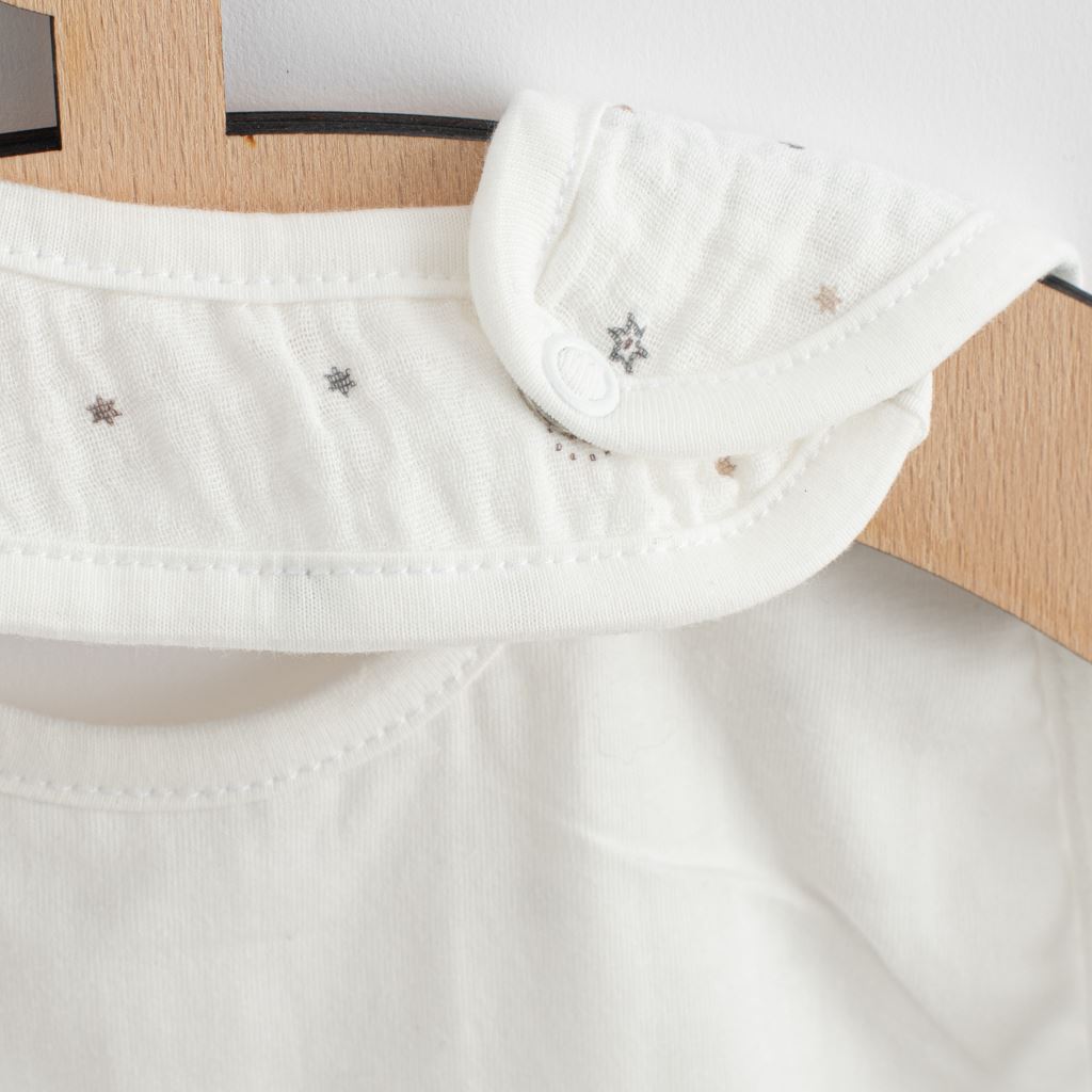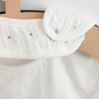 Bib de muselina para bebés de la hermosa marca checa New Baby Arthur. La babero se puede ajustar a 2 tamaños con botones a presión. La muselina es una de las telas más puras, sencillas y suaves del mundo. Este material transpirable, tejido de forma delicada, es tan perfecto que los niños de todo el mundo lo adoran. Su estructura ligera permite que la muselina "respire", lo que asegura una buena circulación del aire y reduce el riesgo de sobrecalentamiento. Esta propiedad ayuda a mantener a su bebé cómodo, seguro y a los padres tranquilos. La muselina es muy duradera, resistiendo múltiples lavados y volviéndose más suave y ligera con el tiempo. Dimensiones: 25x30 cm. Composición: 100% algodón. OEKO-TEX STANDARD 100.