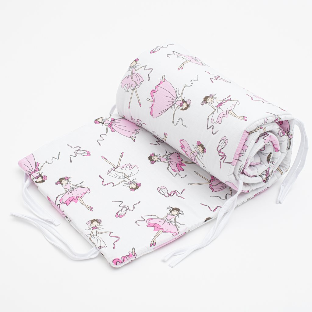 Mantén de cuna práctico New Baby Ballerina Bella con estampado de bailarina. Está fabricado con un material suave y agradable. Composición: 100% algodón. Relleno: 100% poliéster. Sujeción a la cuna mediante cintas. Dimensiones: aproximadamente 150 cm.