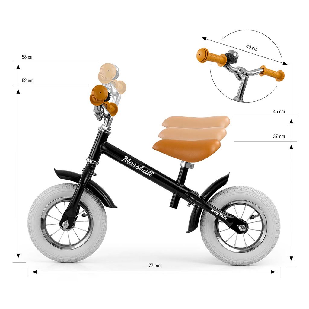 Montar en una bicicleta de balance es ideal para aprender el equilibrio, haciendo que montar en una bicicleta clásica sea mucho más fácil más adelante. La bicicleta es sin pedales, lo que permite al niño concentrarse principalmente en mantener el equilibrio y la dirección. Las amplias ruedas inflables de 10 pulgadas absorben perfectamente los impactos, lo que aumenta la comodidad al montar. Gracias al sillín ergonómico y ajustable en altura con relleno suave, la bicicleta crecerá junto a su niño. El manillar ajustable en altura está alojado en rodamientos de bolas. Las empuñaduras de goma antideslizantes garantizan un agarre seguro y un manejo cómodo para el niño. El diseño clásico y ergonómico de la bicicleta asegura una larga durabilidad y confort durante su uso. El marco de acero de la bicicleta proporciona aún más resistencia y su construcción está adaptada para un uso prolongado.