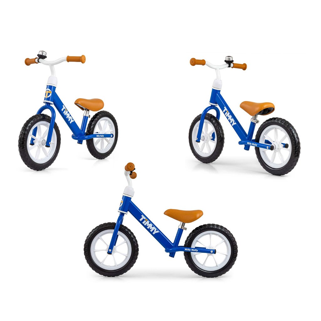 La bicicleta de equilibrio TIMMY enseña equilibrio y coordinación. Se trata de una bicicleta ligera, que no tiene pedales ni cadena. En su lugar, los niños se mueven impulsándose con los pies desde el suelo, lo que les permite adquirir poco a poco confianza y habilidades para andar en dos ruedas. El sillín ajustable permite adaptar óptimamente la bicicleta a la altura del niño. Está diseñado para proporcionar un uso cómodo. TIMMY es una opción popular entre los padres que quieren que sus hijos pasen tiempo activamente al aire libre mientras aprenden nuevas habilidades.