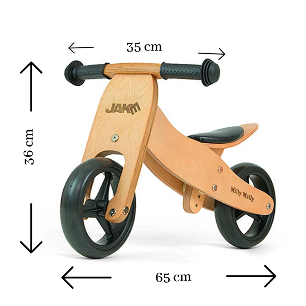 El patinete multifuncional de madera Milly Mally JAKE es ideal para niños que están comenzando a aprender a montar en bicicleta y aún no pueden mantener el equilibrio en dos ruedas. La ventaja del patinete JAKE es que se convierte fácilmente de una triciclo a un patinete de dos ruedas. Está fabricado con madera resistente en hermosos colores vibrantes, decorado con imágenes y equipado con ruedas de espuma. Los anchos espacios entre las ruedas proporcionan una estabilidad, seguridad y comodidad extremas tanto en casa como al aire libre. El manillar blando antideslizante asegura la protección de las manos del niño. Un hermoso patinete multifuncional que atraerá tanto a niñas como a niños.