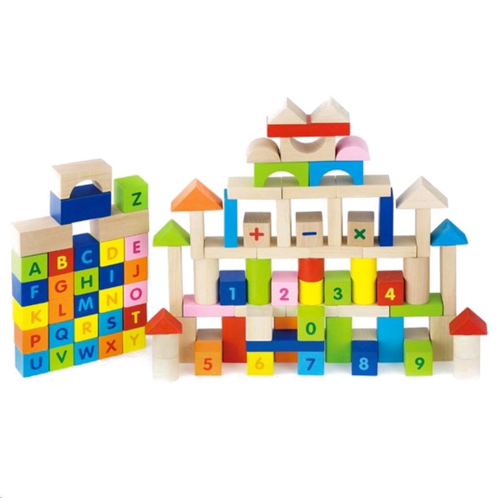 Hermosas y coloridas bloques de madera en un cubo Viga, letras y números. Ofrece 100 piezas maravillosamente coloridas, perfectas para los pequeños constructores. Este juego de construcción es duradero y proporciona a su hijo años de juego interesante y creativo. Los bloques tienen diversas formas, tamaños y hermosos colores. En los bloques encontrará letras, números y símbolos para sumar, restar, multiplicar y dividir. También podrá encontrar formas como cubos, prismas, triángulos, cilindros, rectángulos, puentes, etc.