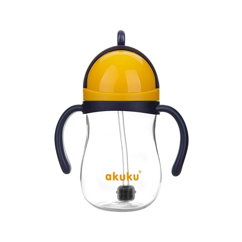 Botella mágica con pajita de silicona equipada con un peso al final para beber desde cualquier ángulo.