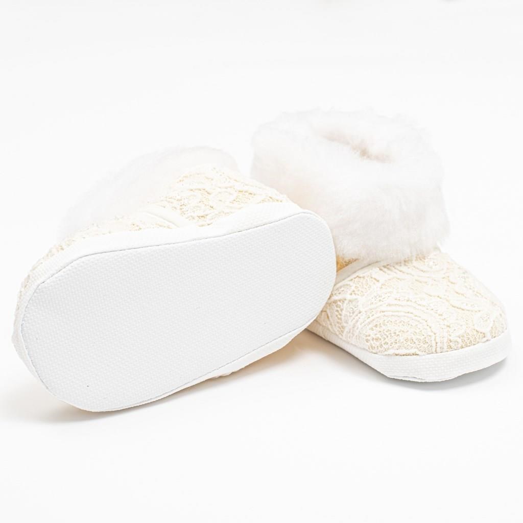 Zapatillas de invierno para bebés New Baby. Bonitas y cálidas botas con encaje y cierre de velcro. La parte interior está forrada con tejido de lana - 100% poliéster. Las zapatillas se ajustan al pie y tienen un amplio interior que permite el libre movimiento de los dedos y los músculos. Este producto no está diseñado para caminar. Son muy ligeras con una suela sintética delgada. Composición: 100% poliéster, tejido de lana - 100% poliéster. Suela: material sintético PVC sin BPA. La longitud de la plantilla interior es de 10 cm. Diseñadas para bebés de 0 a 3 meses. Se entregan en una práctica caja. Advertencia: bajo la plantilla textil, a veces se encuentra una plantilla de papel que mantiene la forma de la zapatilla. Retire esta plantilla de papel antes del primer uso.